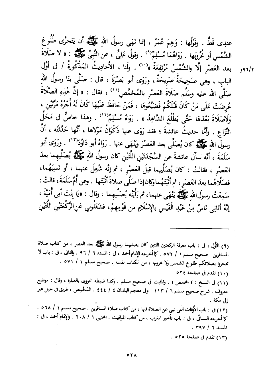 (٩) الأول، في: باب معرفة الركعتين اللتين كان يصليهما رسول اللَّه -صلى اللَّه عليه وسلم- بعد العصر، من كتاب صلاة المسافرين. صحيح مسلم ١/ ٥٧٢. كما أخرجه الإمام أحمد، في: المسند ٦/ ٩٦. والثانى، في: باب لا تتحروا بصلاتكم طلوع الشمس ولا غروبها، من الكتاب نفسه. صحيح مسلم ١/ ٥٧١.