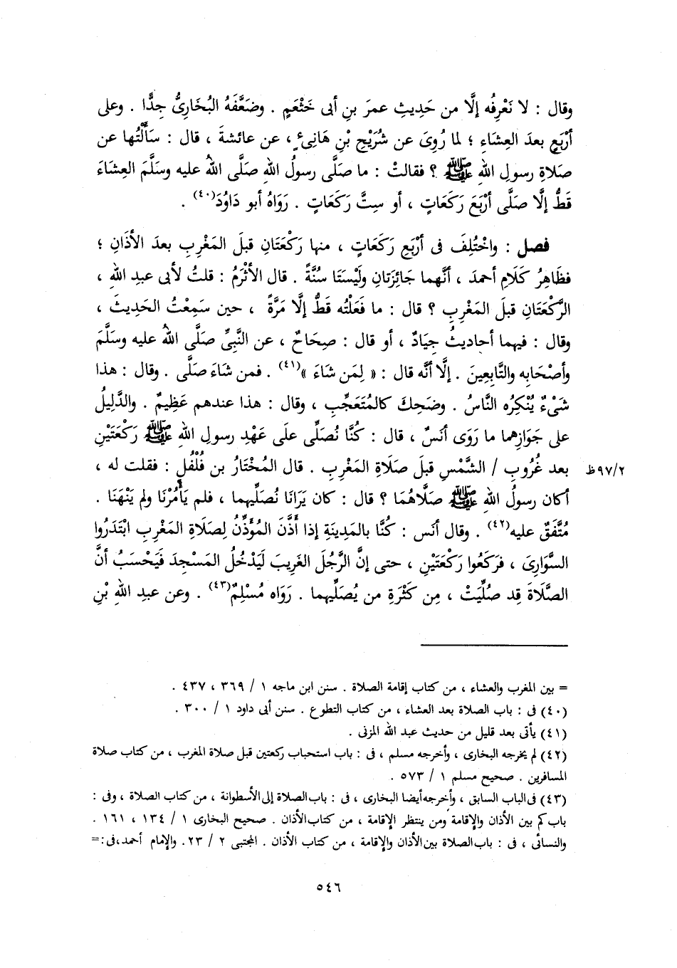 (٤٢) لم يخرجه البخاري، وأخرجه مسلم، في: باب استحباب ركعتين قبل صلاة المغرب، من كتاب صلاة المسافرين. صحيح مسلم ١/ ٥٧٣.