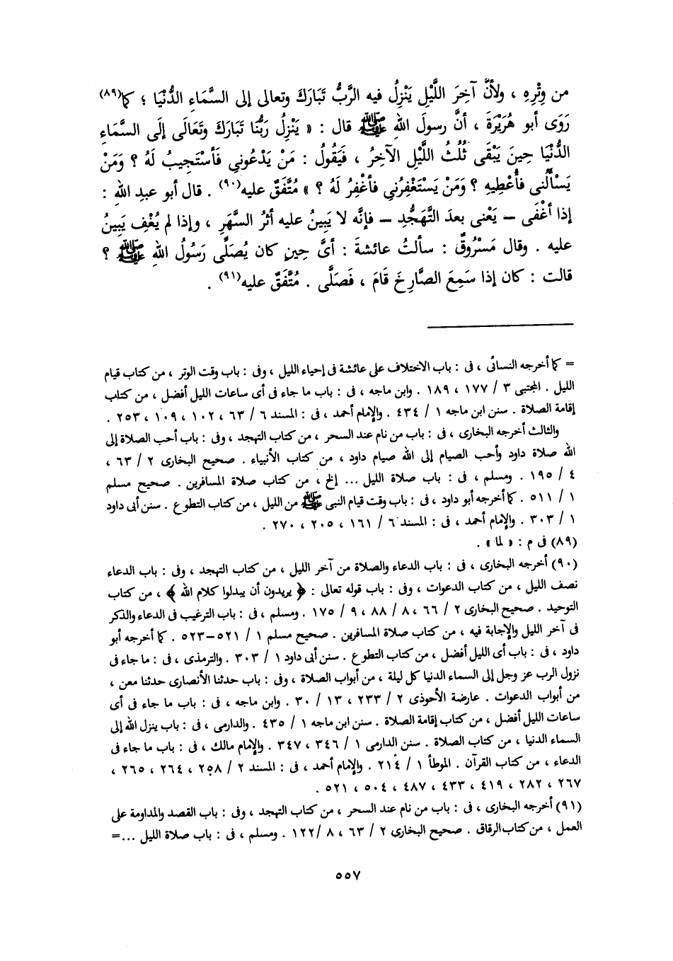(٩٠) أخرجه البخاري، في: باب الدعاء والصلاة من آخر الليل، من كتاب التهجد، وفي: باب الدعاء نصف الليل، من كتاب الدعوات، وفي: باب قوله تعالى: {يُرِيدُونَ أَنْ يُبَدِّلُوا كَلَامَ اللَّهِ}، من كتاب التوحيد. صحيح البخاري ٢/ ٦٦، ٨/ ٨٨، ٩/ ١٧٥. ومسلم، في: باب الترغيب في الدعاء والذكر في آخر الليل والإجابة فيه، من كتاب صلاة المسافرين. صحيح مسلم ١/ ٥٢١ - ٥٢٣. كما أخرجه أبو داود، في: باب أي الليل أفضل، من كتاب التطوع. سنن أبي داود ١/ ٣٠٣. والترمذي، في: ما جاء في نزول الرب عز وجل إلى السماء الدنيا كل ليلة، من أبواب الصلاة، وفي: باب حدثنا الأنصاري حدثنا معن، من أبواب الدعوات. عارضة الأحوذي ٢/ ٢٣٣، ١٣/ ٣٠. وابن ماجه، في: باب ما جاء في أي ساعات الليل أفضل، من كتاب إقامة الصلاة. سنن ابن ماجه ١/ ٤٣٥. والدارمي، في: باب ينزل اللَّه إلى السماء الدنيا، من كتاب الصلاة. سنن الدارمي ١/ ٣٤٦، ٣٤٧. والإمام مالك، في: باب ما جاء في الدعاء، من كتاب القرآن. الموطأ ١/ ٢١٤. والإمام أحمد، في: المسند ٢/ ٢٥٨، ٢٦٤، ٢٦٥، ٢٦٧، ٢٨٢، ٤١٩، ٤٣٣، ٤٨٧، ٥٠٤، ٥٢١.