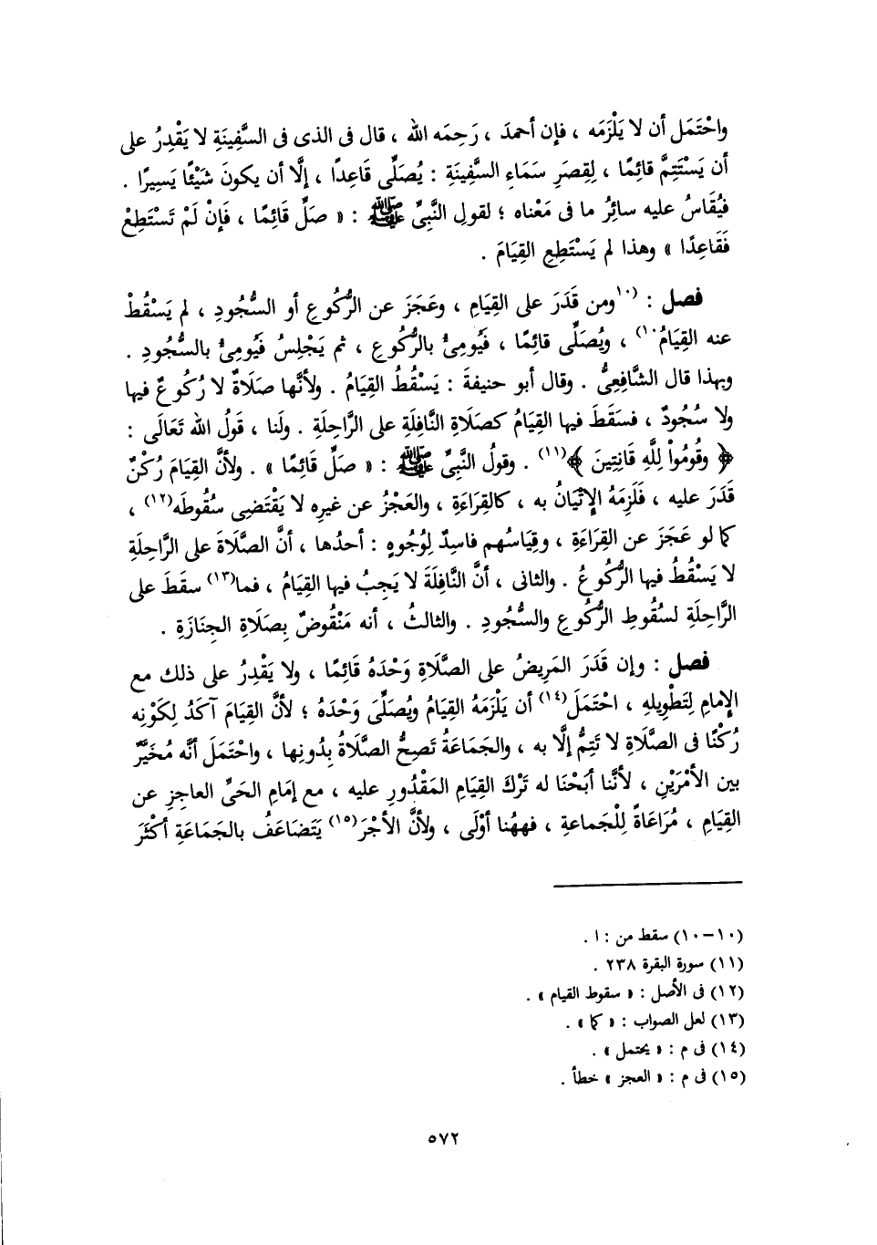 (١٢) في الأصل: "سقوط القيام".