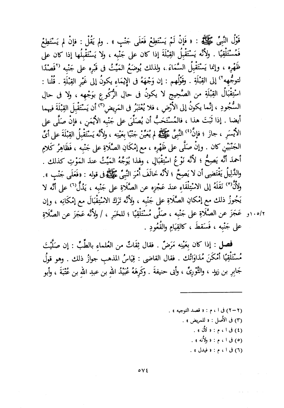 فصل: إذا كان بِعَيْنِه مَرَضٌ. فقال ثِقَاتٌ من العُلماءِ بالطِّبِّ: إن صَلَّيْتَ مُسْتَلْقِيًا أمْكَنَ مُدَاوَاتُك. فقال القاضي: قِيَاسُ المذهبِ جوازُ ذلك. وهو قولُ جَابِرِ بن زيدٍ، والثَّوْرِيِّ، وأبي حنيفةَ. وكَرِهَهُ عُبَيْدُ اللهِ بن عبدِ اللهِ بن عُتْبَةَ، وأبو