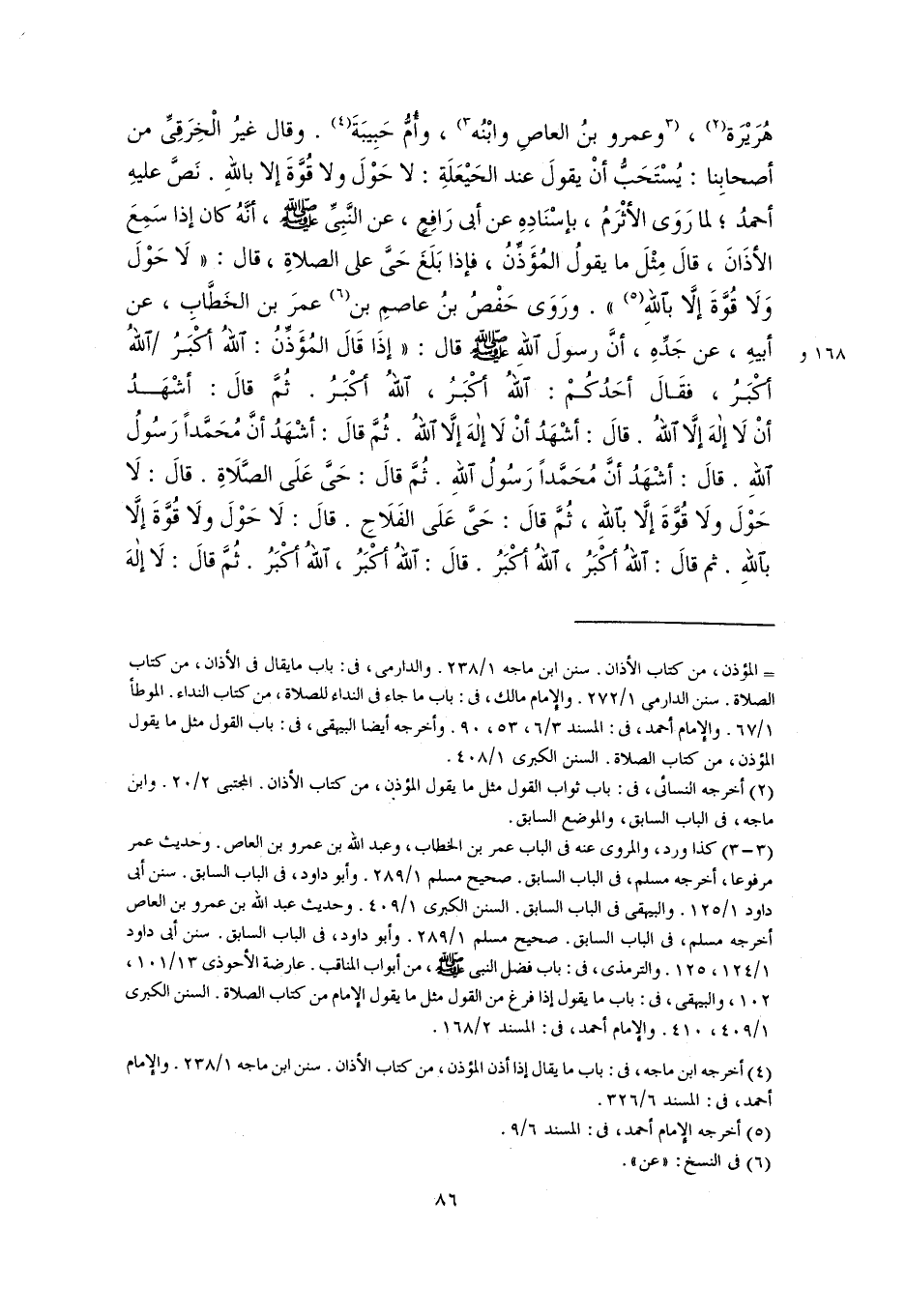 (٢) أخرجه النسائي، في: باب ثواب القول مثل ما يقول المؤذن، من كتاب الأذان. المجتبى ٢/ ٢٠. وابن ماجه، في الباب السابق، والموضع السابق.