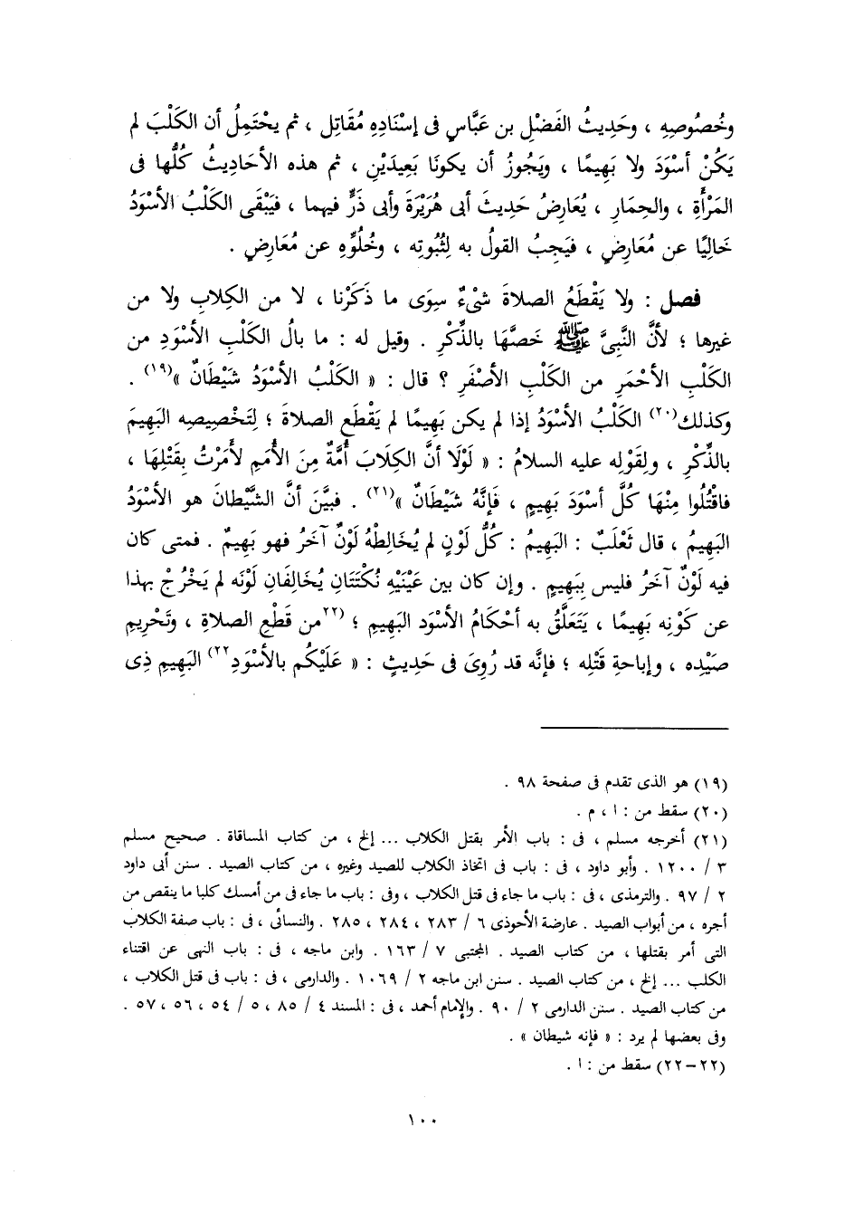 (٢١) أخرجه مسلم، في: باب الأمر بقتل الكلاب. . . إلخ، من كتاب المساقاة. صحيح مسلم ٣/ ١٢٠٠. وأبو داود، في: باب في اتخاذ الكلاب للصيد وغيره، من كتاب الصيد. سنن أبي داود ٢/ ٩٧. والترمذي، في: باب ما جاء في قتل الكلاب، وفى: باب ما جاء في من أمسك كلبا ما ينقص من أجره، من أبواب الصيد. عارضة الأحوذى ٦/ ٢٨٣، ٢٨٤، ٢٨٥. والنسائي، في: باب صفة الكلاب التي أمر بقتلها، من كتاب الصيد. المجتبى ٧/ ١٦٣. وابن ماجه، في: باب النهى عن اقتناء الكلب. . . إلخ، من كتاب الصيد. سنن ابن ماجه ٢/ ١٠٦٩. والدارمى، في: باب في قتل الكلاب، من كتاب الصيد. سنن الدارمي ٢/ ٩٠. والإِمام أحمد، في: المسند ٤/ ٨٥، ٥/ ٥٤، ٥٦، ٥٧. وفى بعضها لم يرد: "فإنه شيطان".
