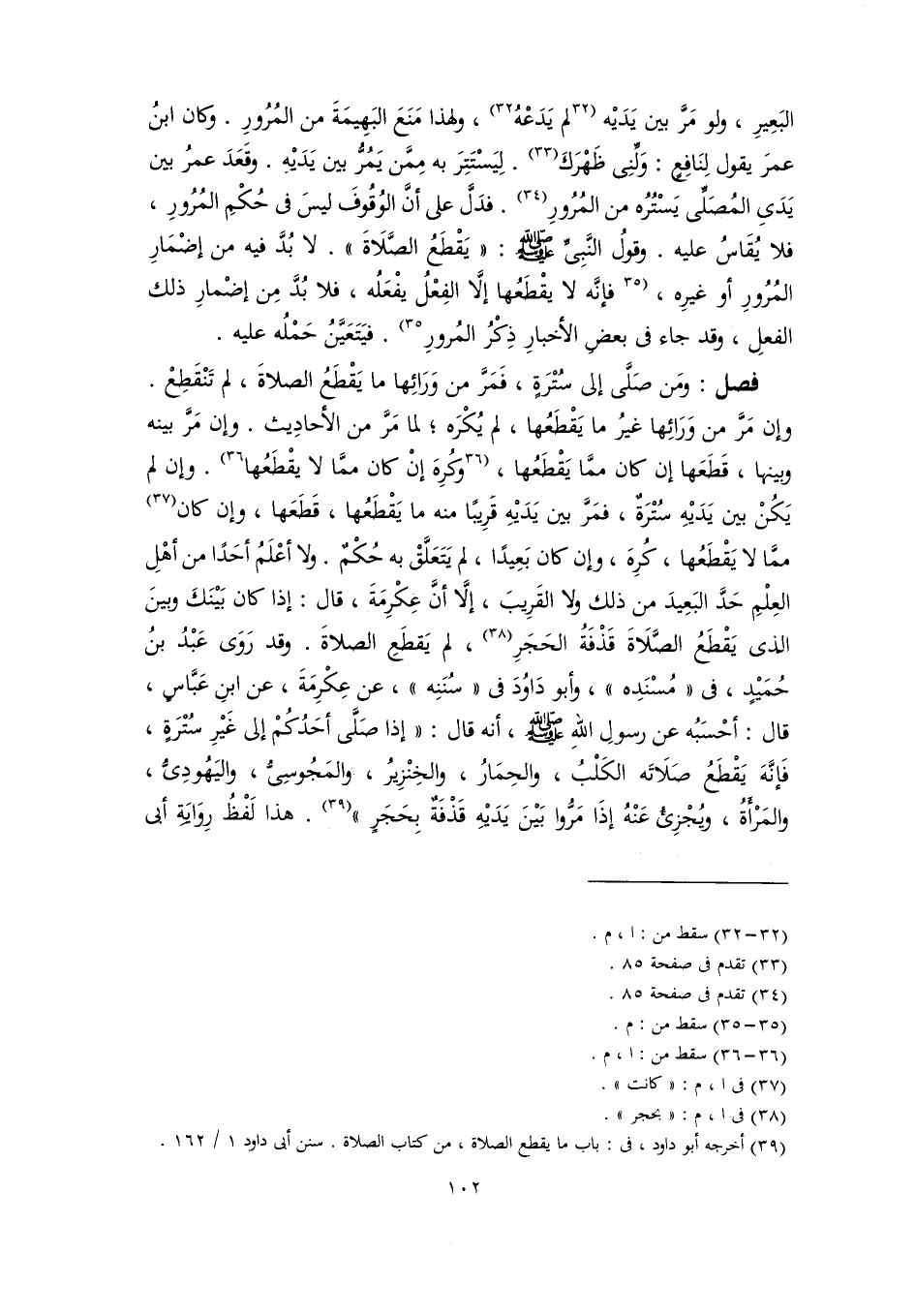 (٣٩) أخرجه أبو داود، في: باب ما يقطع الصلاة، من كتاب الصلاة. سنن أبي داود ١/ ١٦٢.