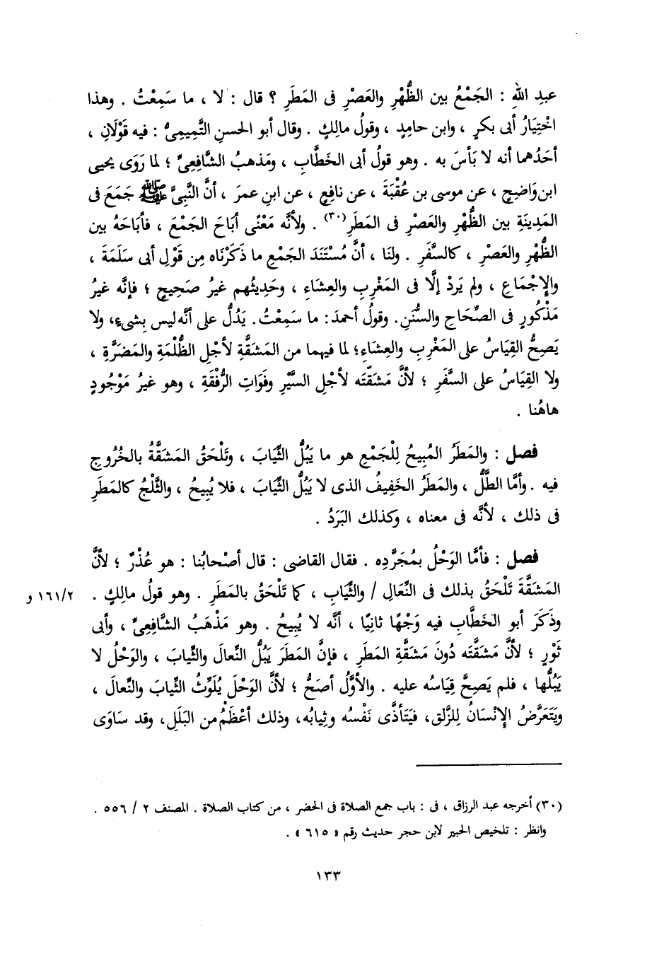 (٣٠) أخرجه عبد الرزاق، في: باب جمع الصلاة في الحضر، من كتاب الصلاة. المصنف ٢/ ٥٥٦. وانظر: تلخيص الحبير لابن حجر حديث رقم "٦١٥".