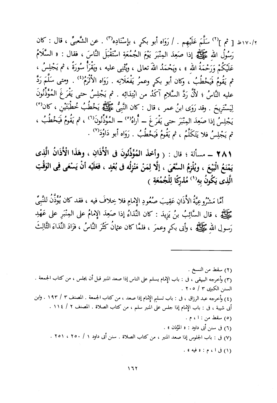 (٤) وأخرجه عبد الرزاق، في: باب تسليم الإِمام إذا صعد، من كتاب الجمعة. المصنف ٣/ ١٩٣. وابن أبي شيبة، في: باب الإِمام إذا جلس على المنبر سلم، من كتاب الصلاة. المصنف ٢/ ١١٤.