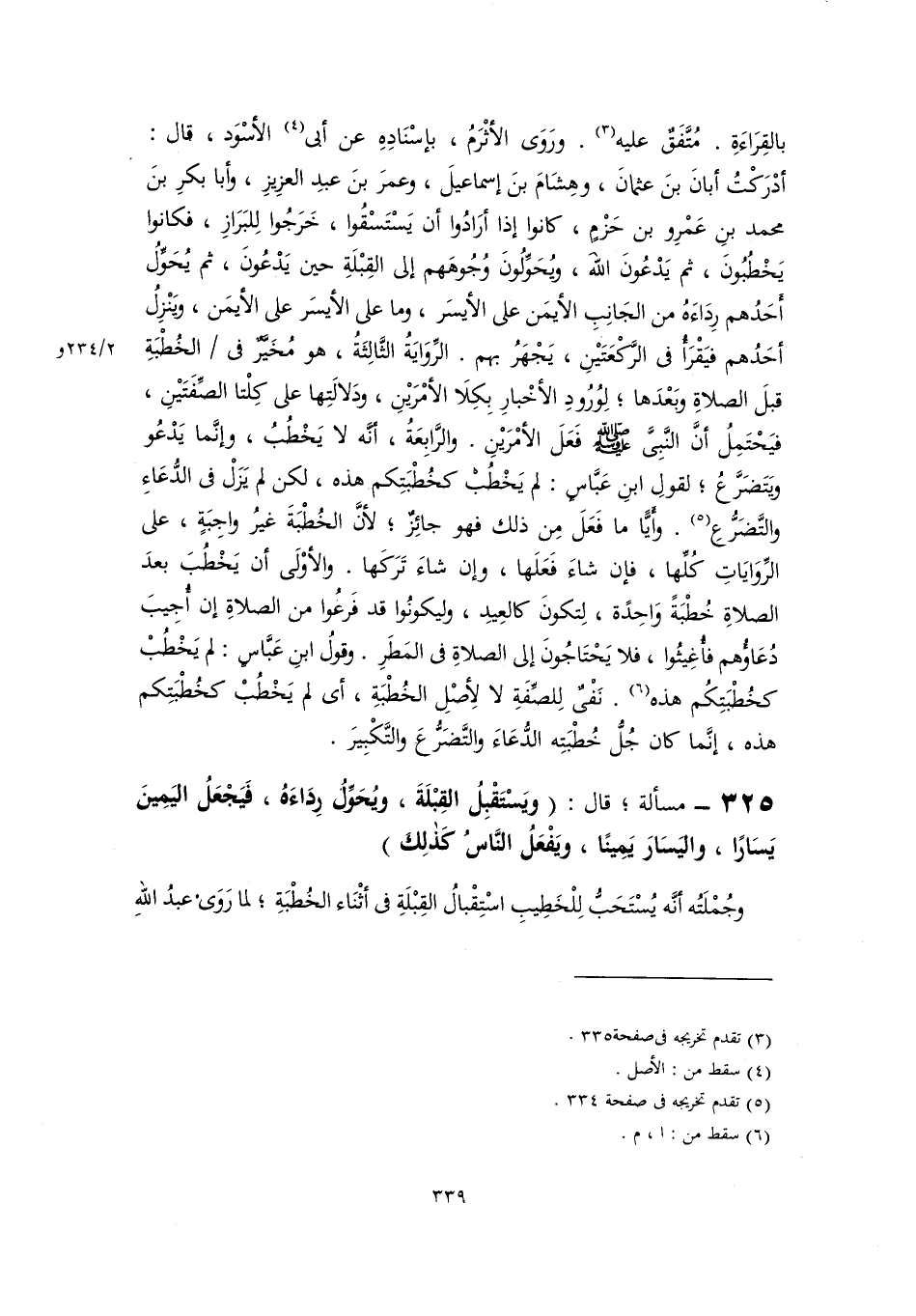 ٣٢٥ - مسألة؛ قال: (ويَسْتَقْبِلُ القِبْلَةَ، ويُحَوِّلُ رِدَاءَهُ، فَيَجْعَلُ اليَمِينَ يَسَارًا، واليَسَارَ يَمِينًا، ويَفْعَلُ النَّاسُ كَذلِكَ)