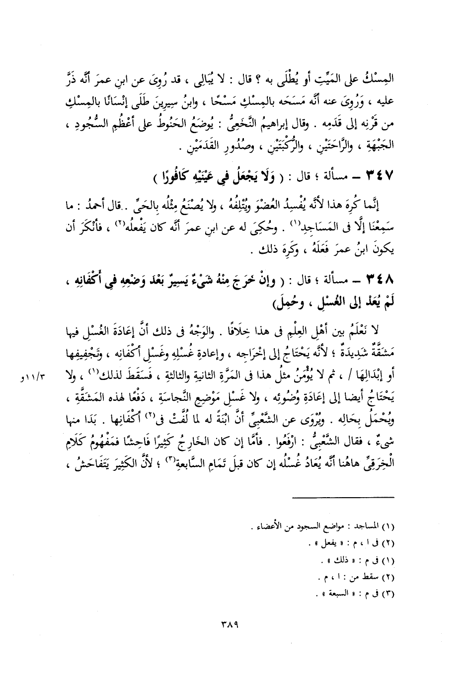 ٣٤٧ - مسألة؛ قال: (وَلَا يَجْعَلُ فىِ عَيْنَيْهِ كَافُورًا)