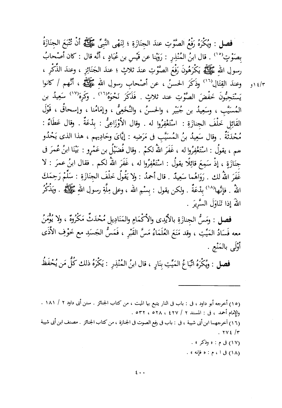 (١٥) أخرجه أبو داود، في: باب في النار يتبع بها الميت، من كتاب الجنائز. سنن أبي داود ٢/ ١٨١. والإِمام أحمد، في: المسند ٢/ ٤٢٧، ٥٢٨، ٥٣٢.