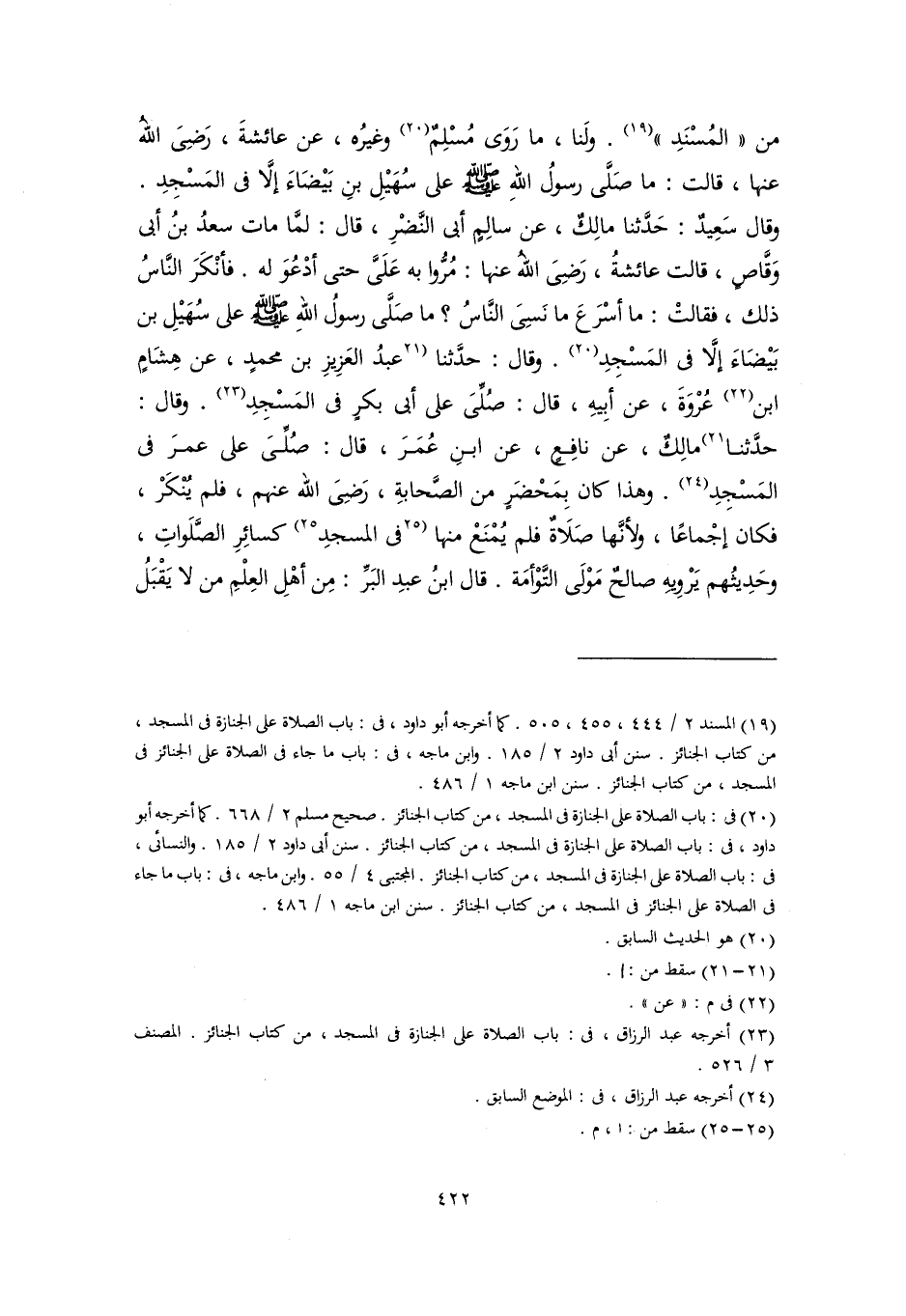 (٢٢) أخرجه عبد الرزاق، في: باب الصلاة على الجنازة في المسجد، من كتاب الجنائز. المصنف ٣/ ٥٢٦.