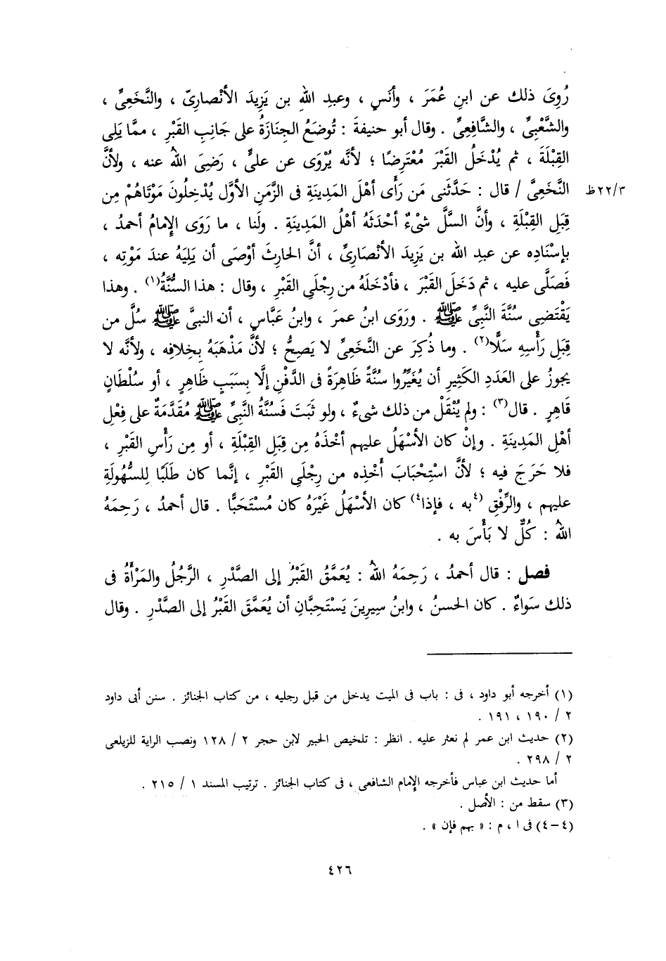 (١) أخرجه أبو داود، في: باب في الميت يدخل من قبل رجليه، من كتاب الجنائز. سنن أبي داود ٢/ ١٩٠، ١٩١.