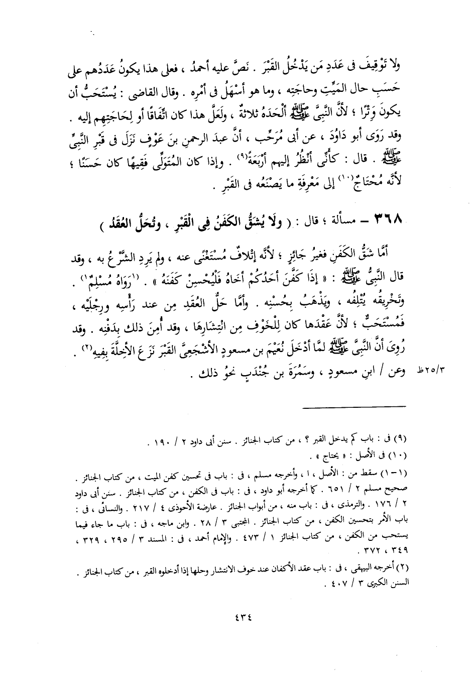 (٩) في: باب كم يدخل القبر؟ ، من كتاب الجنائز. سنن أبي داود ٢/ ١٩٠.