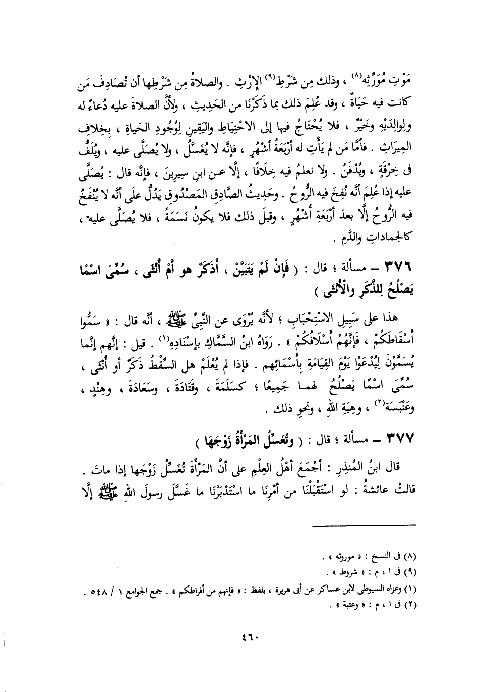 هذا على سَبِيلِ الاسْتِحْبَابِ؛ لأنَّه يُرْوَى عن النَّبِيِّ -صلى اللَّه عليه وسلم-، أنَّه قال: "سَمُّوا أَسْقَاطَكُمْ، فَإنَّهُمْ أسْلَافُكُمْ". رَوَاهُ ابنُ السَّمَّاكِ بإسْنَادِهِ (١). قيل: إنَّهم إنَّما يُسَمَّوْنَ لِيُدْعَوْا يَوْمَ القِيَامَةِ بِأَسْمَائِهم. فإذا لم يُعْلَمْ هل السِّقْطُ ذَكَرٌ أو أُنْثَى، سُمِّىَ اسْمًا يَصْلُحُ لهما جَمِيعًا؛ كسَلَمَةَ، وقَتَادَةَ، وسَعَادَةَ، وهِنْدٍ، وعَنْبَسَة (٢)، وهِبَةِ اللهِ، ونحوِ ذلك.