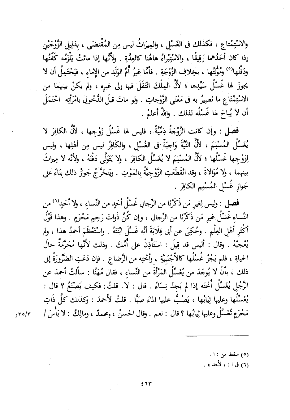 والاسْتِمْتاعِ، فكذلك في الغَسْلِ، والمِيرَاثُ ليس مِن المُقْتضَى، بِدَلِيلِ الزَّوْجَيْنِ إذا كان أحَدُهما رَقِيقًا، والاسْتِبْراءُ ها هُنا كالعِدَّةِ. ولأنَّها إذا ماتَتْ يَلْزَمُه كَفَنُها ودَفْنُها (٥) ومُؤْنَتُها، بخِلافِ الزَّوْجَةِ. فأمَّا غيرُ أُمِّ الوَلدِ من الإِماءِ، فيَحْتَمِلُ أن لا يجوزَ لها غَسْلُ سَيِّدِها؛ لأنَّ المِلْكَ انْتَقَلَ فيها إلى غيرِه، ولم يكنْ بينهما من الاسْتِمْتَاعِ ما تَصِيرُ به في مَعْنَى الزَّوْجاتِ. ولو ماتَ قبلَ الدُّخُولِ بامْرَأتِه احْتَمَلَ أن لا يُباحَ لها غَسْلُه لذلك. واللهُ أعلمُ.