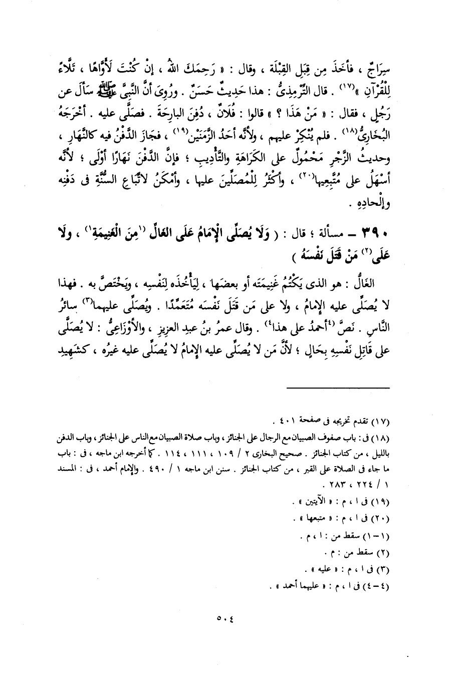 ٣٩٠ - مسألة؛ قال: (وَلَا يُصَلِّى الْإِمَامُ عَلَى الغَالِّ [مِنَ الْغَنِيمَةِ] (١)، ولَا عَلَى (٢) مَنْ قَتَلَ نَفْسَهُ)