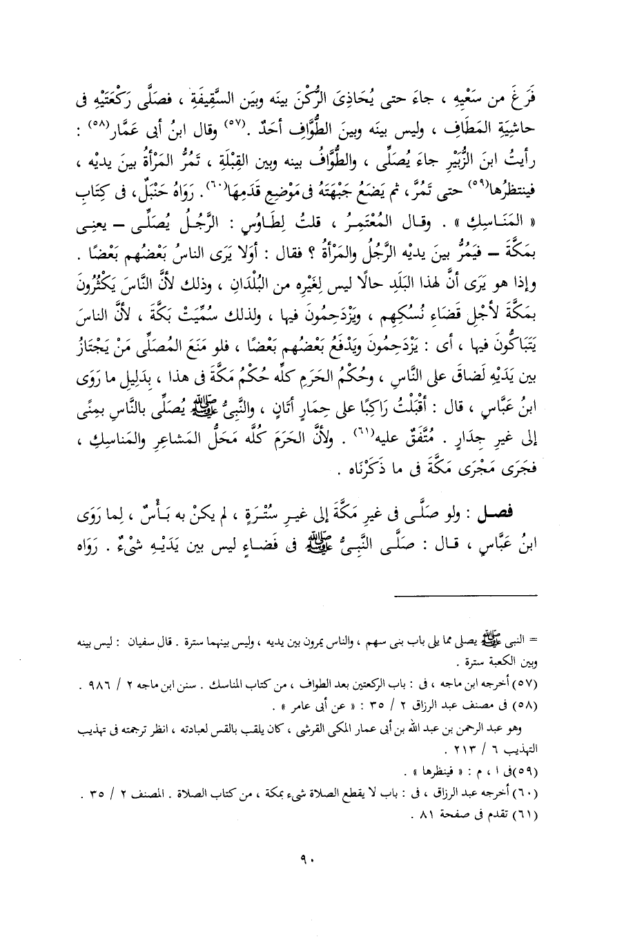 (٦٠) أخرجه عبد الرزاق، في: باب لا يقطع الصلاة شيء بمكة، من كتاب الصلاة. المصنف ٢/ ٣٥.