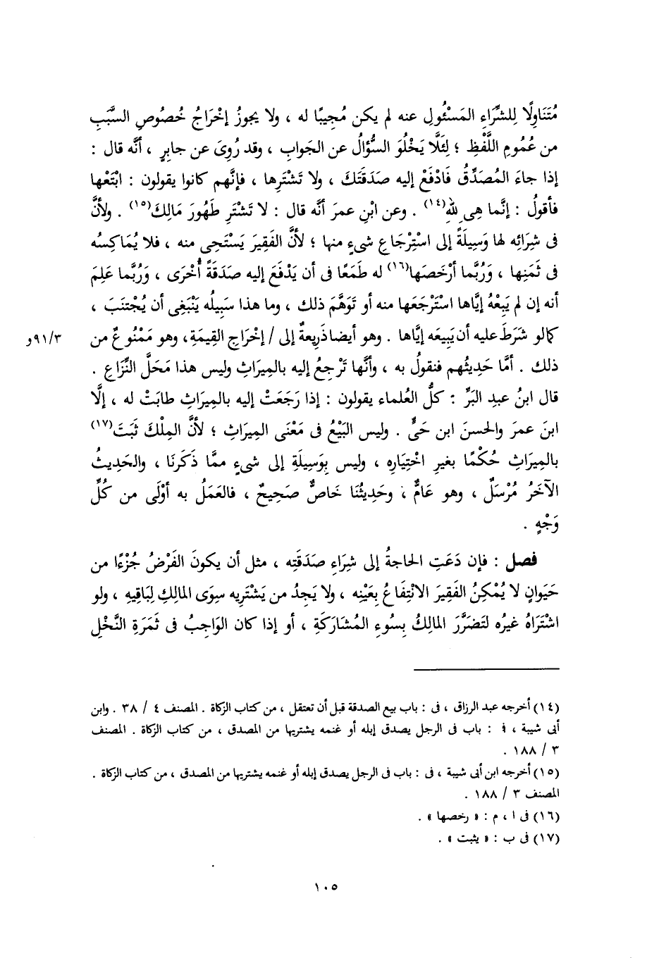 (١٥) أخرجه ابن أبي شيبة، في: باب في الرجل يصدق إبله أو غنمه يشتريها من المصدق، من كتاب الزكاة. المصنف ٣/ ١٨٨.