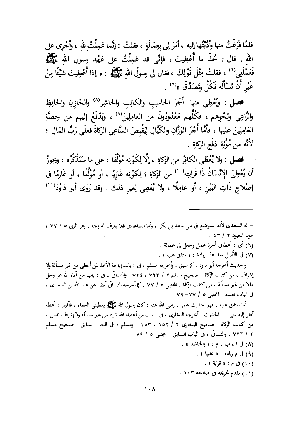 فلمَّا فَرَغْتُ منها وأدَّيْتُها إليه، أمَرَ لِي بِعِمَالَةٍ، فقلتُ: إنَّما عَمِلْتُ للهِ، وأجْرِي على اللهِ. قال: خُذْ ما أُعْطِيتَ، فإنِّي قد عَمِلْتُ على عَهْدِ رسولِ اللهِ -صَلَّى اللهُ عَلَيْهِ وَسَلَّمَ- فَعَمَّلَنِي (٦)، فقلتُ مِثْلَ قَوْلِكَ، فقال لي رسولُ اللهِ -صَلَّى اللهُ عَلَيْهِ وَسَلَّمَ-: "إذَا أُعْطِيتَ شَيْئًا مِنْ غَيْرِ أنْ تَسْأَلَه فَكُلْ وتَصَدَّقْ" (٧).