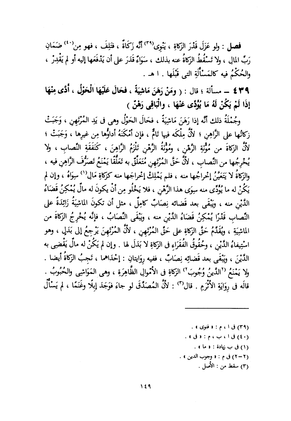 ٤٣٩ - مسألة؛ قال: (ومَنْ رَهَنَ مَاشِيَةً، فحَالَ عَلَيْهَا الْحَوْلُ، أدَّى مِنْهَا إذَا لَمْ يَكُنْ لَهُ مَا يُؤَدِّى عَنْهَا، والبْاقِي رَهْنٌ)