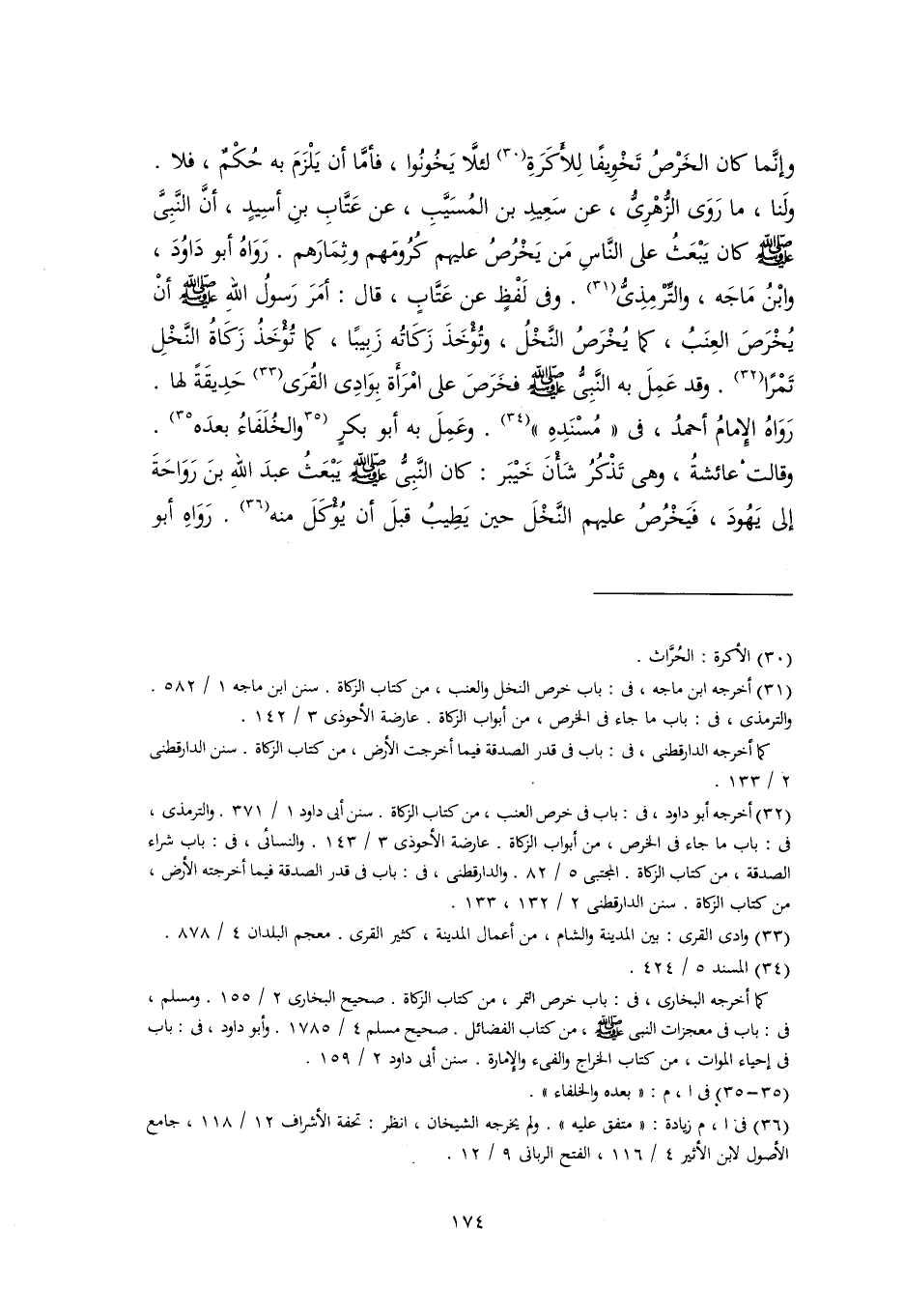 (٣٢) أخرجه أبو داود، في: باب في خرص العنب، من كتاب الزكاة. سنن أبي داود ١/ ٣٧١. والترمذي، في: باب ما جاء في الخرص، من أبواب الزكاة. عارضة الأحوذي ٣/ ١٤٣. والنسائي، في: باب شراء الصدقة، من كتاب الزكاة. المجتبى ٥/ ٨٢. والدارقطنى، في: باب في قدر الصدقة فيما أخرجته الأرض، من كتاب الزكاة. سنن الدارقطني ٢/ ١٣٢، ١٣٣.