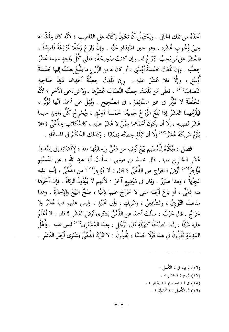 فصل: ويُكْرَهُ لِلْمُسْلِمِ بَيْعُ أرْضِه من ذِمِّيٍّ وإجارَتُها منه؛ لإِفْضَائِه إلى إسْقاطِ عُشْرِ الخَارِجِ منها. قال محمدُ بن موسى: سألتُ أبا عبدِ اللهِ، عن المُسْلِمِ يُؤَاجِرُ (١٨) أرْضَ الخَرَاجِ من الذِّمِّيِّ؟ قال: لا يُؤاجِرُ (١٨) من الذِّمِّيِّ، إنَّما عليه الجِزْيَةُ، وهذا ضَرَرٌ. وقال في مَوْضِعٍ آخَرَ: لأنَّهم لا يُؤَدُّونَ الزكاةَ. فإن آجَرَها منه ذِمِّيٌّ، أو باعَ أرْضَه التى لا خَرَاجَ عليها ذِمِّيًّا، صَحَّ البَيْعُ والإِجارَةُ. وهذا مذهبُ الثَّوْرِيِّ، والشَّافِعِيِّ، وشَرِيكٍ، وأبي عُبَيْدٍ، وليس عليهم فيها عُشْرٌ ولا خَرَاجٌ. قال حَرْبٌ: سألتُ أحمدَ عن الذِّمِّيِّ يَشْتَرِى أرْضَ العُشْرِ؟ قال: لا أعْلَمُ عليه شَيْئًا، إنَّما الصَّدَقَةُ كَهَيْئَةِ مَالِ الرَّجُلِ، وهذا المُشْتَرِى (١٩) ليس عليه. وأَهْلُ المَدِينَةِ يَقُولُونَ في هذا قَوْلًا حَسَنًا، يَقُولُونَ: لا نَتْرُكُ الذِّمِّيَّ يَشْتَرِى أرْضَ العُشْرِ.
