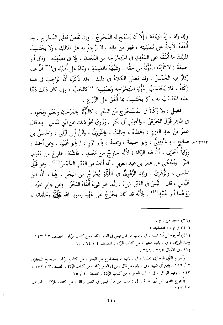 (٤١) أخرجه ابن أبي شيبة، في: باب من قال ليس في العنبر زكاة، من كتاب الزكاة. المصنف ٣/ ١٤٣. وعبد الرزاق، في: باب العنبر، من كتاب الزكاة. المصنف ٤/ ٦٤، ٦٥.