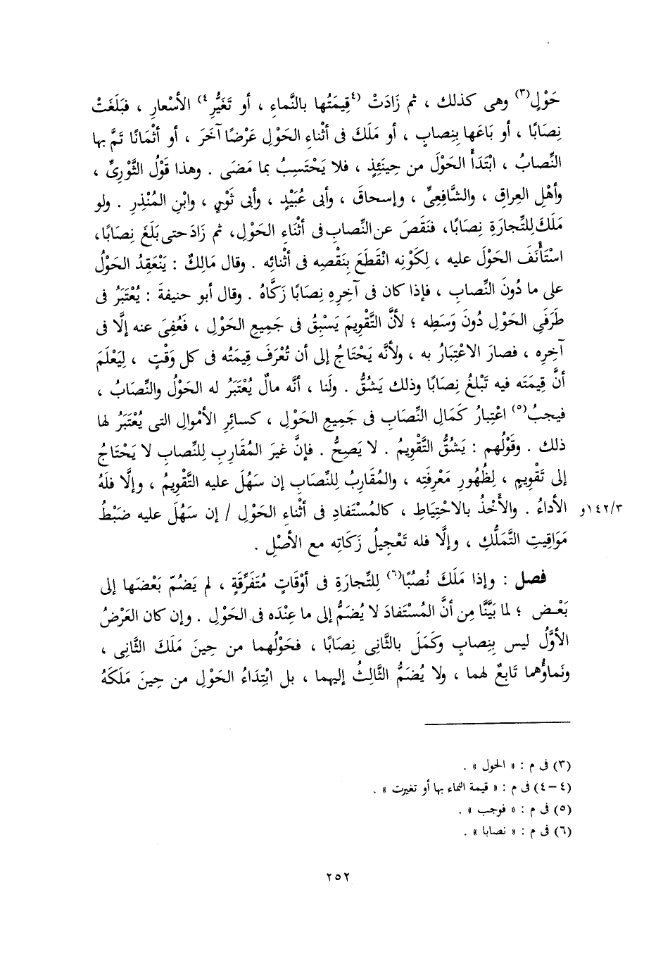 حَوْلٍ (٣) وهى كذلك، ثم زَادَتْ [قِيمَتُها بالنَّماءِ، أو تَغَيُّرِ] (٤) الأسْعارِ، فبَلَغَتْ نِصَابًا، أو بَاعَها بِنِصابٍ، أو مَلَكَ فى أثْناءِ الحَوْلِ عَرْضًا آخَرَ، أو أثْمَانًا تَمَّ بها النِّصابُ، ابْتَدَأَ الحَوْلَ من حِينَئِذٍ، فلا يَحْتَسِبُ بما مَضَى. وهذا قَوْلُ الثَّوْرِىِّ، وأهْلِ العِراقِ، والشَّافِعِىِّ، وإسحاقَ، وأبى عُبَيْدٍ، وأبى ثَوْرٍ، وابْنِ المُنْذِرِ. ولو مَلَكَ لِلتِّجارَةِ نِصَابًا، فنَقَصَ عن النِّصابِ فى أثْنَاءِ الحَوْلِ، ثم زَادَ حتى بَلَغَ نِصَابًا، اسْتَأْنَفَ الحَوْلَ عليه، لِكَوْنِه انْقَطَعَ بِنَقْصِه فى أثْنائِه. وقال مَالِكٌ: يَنْعَقِدُ الحَوْلُ على ما دُونَ النِّصابِ، فإذا كان فى آخِرِهِ نِصَابًا زَكَّاهُ. وقال أبو حنيفةَ: يُعْتَبَرُ فى طَرَفَىِ الحَوْلِ دُونَ وَسَطِه؛ لأنَّ التَّقْوِيمَ يَسْبِقُ فى جَمِيعِ الحَوْلِ، فَعُفِىَ عنه إلَّا فى آخِرِه، فصارَ الاعْتِبَارُ به، ولأنَّه يَحْتَاجُ إلى أن تُعْرَفَ قِيمَتُه فى كل وَقْتٍ، لِيَعْلَمَ أنَّ قِيمَتَه فيه تَبْلغُ نِصَابًا وذلك يَشُقُّ. ولَنا، أنَّه مالٌ يُعْتَبَرُ له الحَوْلُ والنِّصَابُ، فيجبُ (٥) اعْتِبارُ كَمَالِ النِّصَابِ فى جَمِيعِ الحَوْلِ، كسائِرِ الأمْوالِ التى يُعْتَبَرُ لها ذلك. وقَوْلُهم: يَشُقُّ التَّقْوِيمُ. لا يَصِحُّ. فإنَّ غيرَ المُقَارِبِ لِلنِّصابِ لا يَحْتَاجُ إلى تَقْوِيمٍ، لِظُهُورِ مَعْرِفَتِه، والمُقَارِبُ لِلنِّصَابِ إن سَهُلَ عليه التَّقْوِيمُ، وإلَّا فلَهُ الأداءُ. والأخْذُ بالاحْتِيَاطِ، كالمُسْتَفادِ فى أثْناءِ الحَوْلِ إن سَهُلَ عليه ضَبْطُ مَوَاقِيتِ التَّمَلُّكِ، وإلَّا فله تَعْجِيلُ زَكَاتِه مع الأصْلِ.
