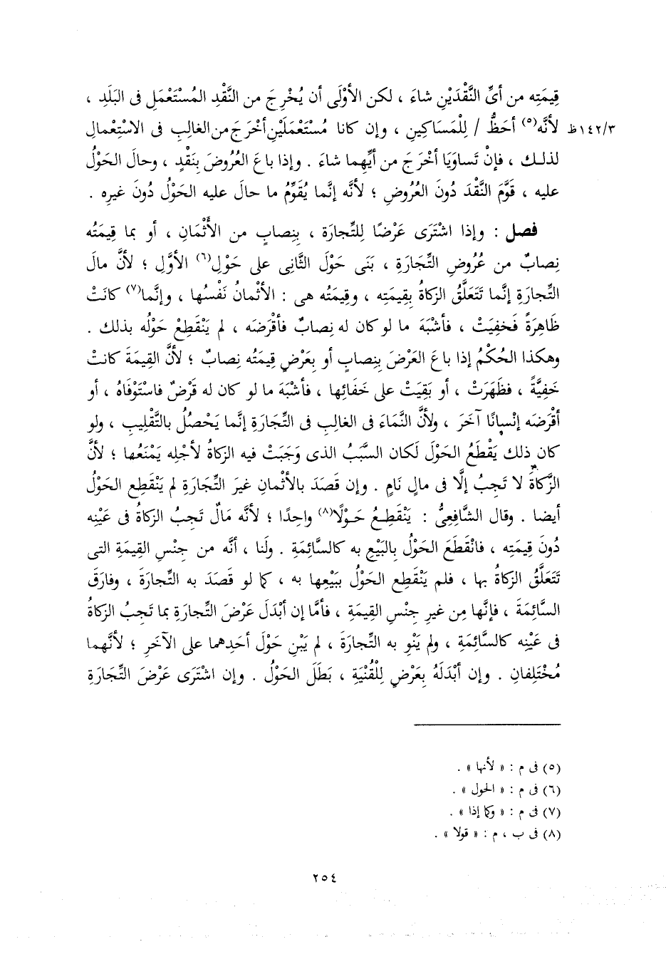 فصل: وإذا اشْتَرَى عَرْضًا لِلتِّجارَة، بِنِصابٍ من الأَثْمَانِ، أو بما قِيمَتُه نِصابٌ من عُرُوضِ التِّجَارَةِ، بَنَى حَوْلَ الثَّانِى على حَوْلِ (٦) الأوَّلِ؛ لأنَّ مالَ التِّجارَةِ إنَّما تَتَعَلَّقُ الزكاةُ بِقِيمَتِه، وقِيمَتُه هى: الأثْمانُ نَفْسُها، وإنَّما (٧) كانَتْ ظَاهِرَةً فَخفِيَتْ، فأشْبَهَ ما لو كان له نِصابٌ فأقْرَضَه، لم يَنْقَطِعْ حَوْلُه بذلك. وهكذا الحُكْمُ إذا باعَ العَرْضَ بِنِصابٍ أو بِعَرْضٍ قِيمَتُه نِصابٌ؛ لأنَّ القِيمَةَ كانتْ خَفِيَّةً، فظَهَرَتْ، أو بَقِيَتْ على خَفَائِها، فأشْبَهَ ما لو كان له قَرْضٌ فاسْتَوْفَاهُ، أو أقْرَضَه إنْسانًا آخَرَ، ولأنَّ النَّمَاءَ فى الغالِبِ فى التِّجَارَةِ إنَّما يَحْصُلُ بالتَّقْلِيبِ، ولو كان ذلك يَقْطَعُ الحَوْلَ لَكان السَّبَبُ الذى وَجَبَتْ فيه الزكاةُ لأجْلِه يَمْنَعُها؛ لأنَّ الزَّكَاةَ لا تَجِبُ إلَّا فى مالٍ نَامٍ. وإن قَصَدَ بالأثْمانِ غيرَ التِّجَارَةِ لم يَنْقَطِع الحَوْلُ أيضا. وقال الشَّافِعِىُّ: يَنْقَطِعُ حَوْلًا (٨) واحِدًا؛ لأنَّه مَالٌ تَجِبُ الزكاةُ فى عَيْنِه دُونَ قِيمَتِه، فانْقَطَعَ الحَوْلُ بِالبَيْعِ به كالسَّائِمَةِ. ولَنا، أنَّه من جِنْسِ القِيمَةِ التى تَتَعَلَّقُ الزكاةُ بها، فلم يَنْقَطِع الحَوْلُ ببَيْعِها به، كما لو قَصَدَ به التِّجارَةَ، وفارَقَ السَّائِمَةَ، فإنَّها مِن غيرِ جِنْسِ القِيمَةِ، فأمَّا إن أبْدَلَ عَرْضَ التِّجارَةِ بما تَجِبُ الزكاةُ فى عَيْنِه كالسَّائِمَةِ، ولم يَنْوِ به التِّجارَةَ، لم يَبْنِ حَوْلَ أحَدِهما على الآخَرِ؛ لأنَّهما مُخْتَلِفانِ. وإن أبْدَلَهُ بِعَرْضٍ لِلْقُنْيَةِ، بَطَلَ الحَوْلُ. وإن اشْتَرَى عَرْضَ التِّجَارَةِ