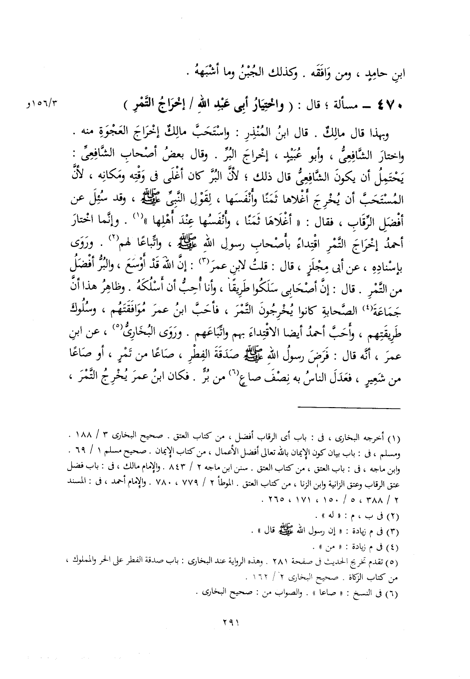 (٥) تقدم تخريج الحديث في صفحة ٢٨١. وهذه الرواية عند البخارى: باب صدقة الفطر على الحر والمملوك، من كتاب الزكاة. صحيح البخارى ٢/ ١٦٢.