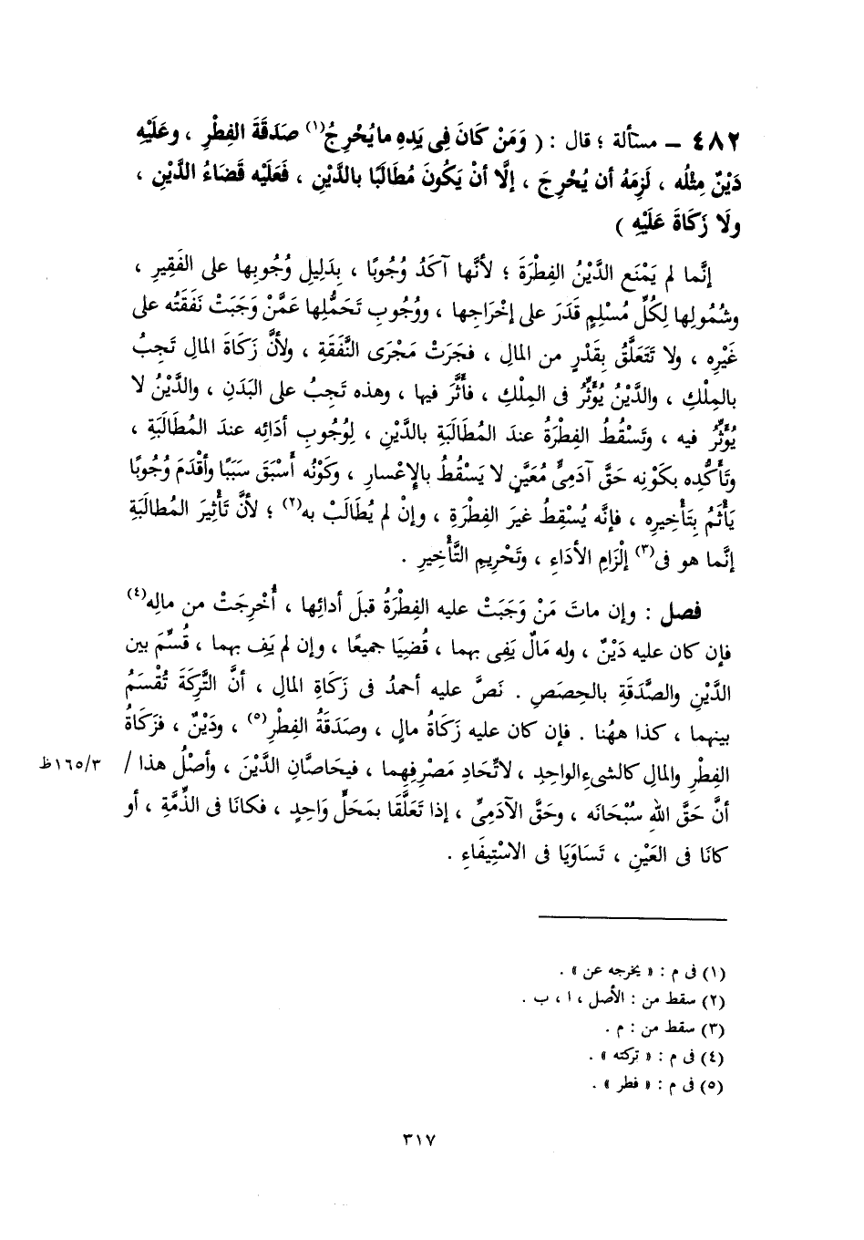 ٤٨٢ - مسألة؛ قال: (وَمَنْ كَانَ فِى يَدِهِ ما يُخْرِجُ (١) صَدَقَةَ الفِطْرِ، وعَلَيْهِ دَيْنٌ مِثْلُه، لَزِمَهُ أن يُخْرِجَ، إلَّا أنْ يَكُونَ مُطَالَبًا بالدَّيْنِ، فَعَلَيْه قَضَاءُ الدَّيْنِ، ولَا زكَاةَ عَلَيْهِ)