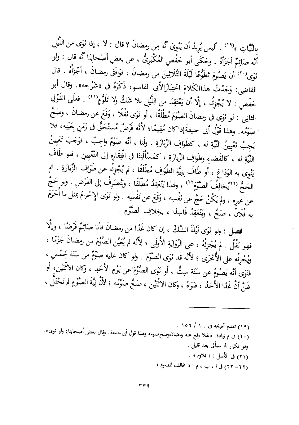(٢٠) في م زيادة: "نفلا وقع عنه رمضان وصح صومه وهذا قول أبي حنيفة. وقال بعض أصحابنا: ولو نوى". وهو تكرار لما سيأتى بعد قليل.