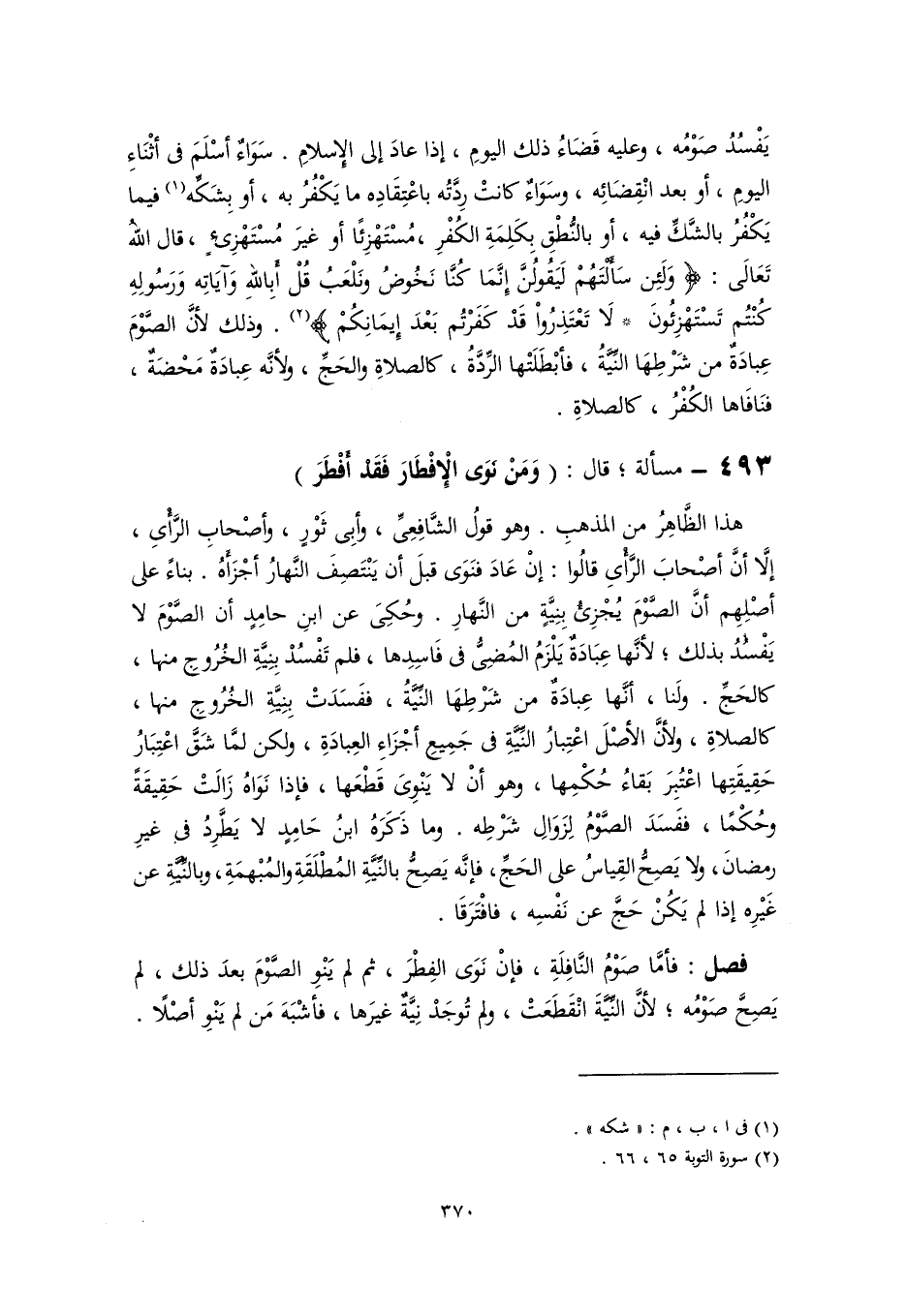 (٢) سورة التوبة ٦٥، ٦٦.