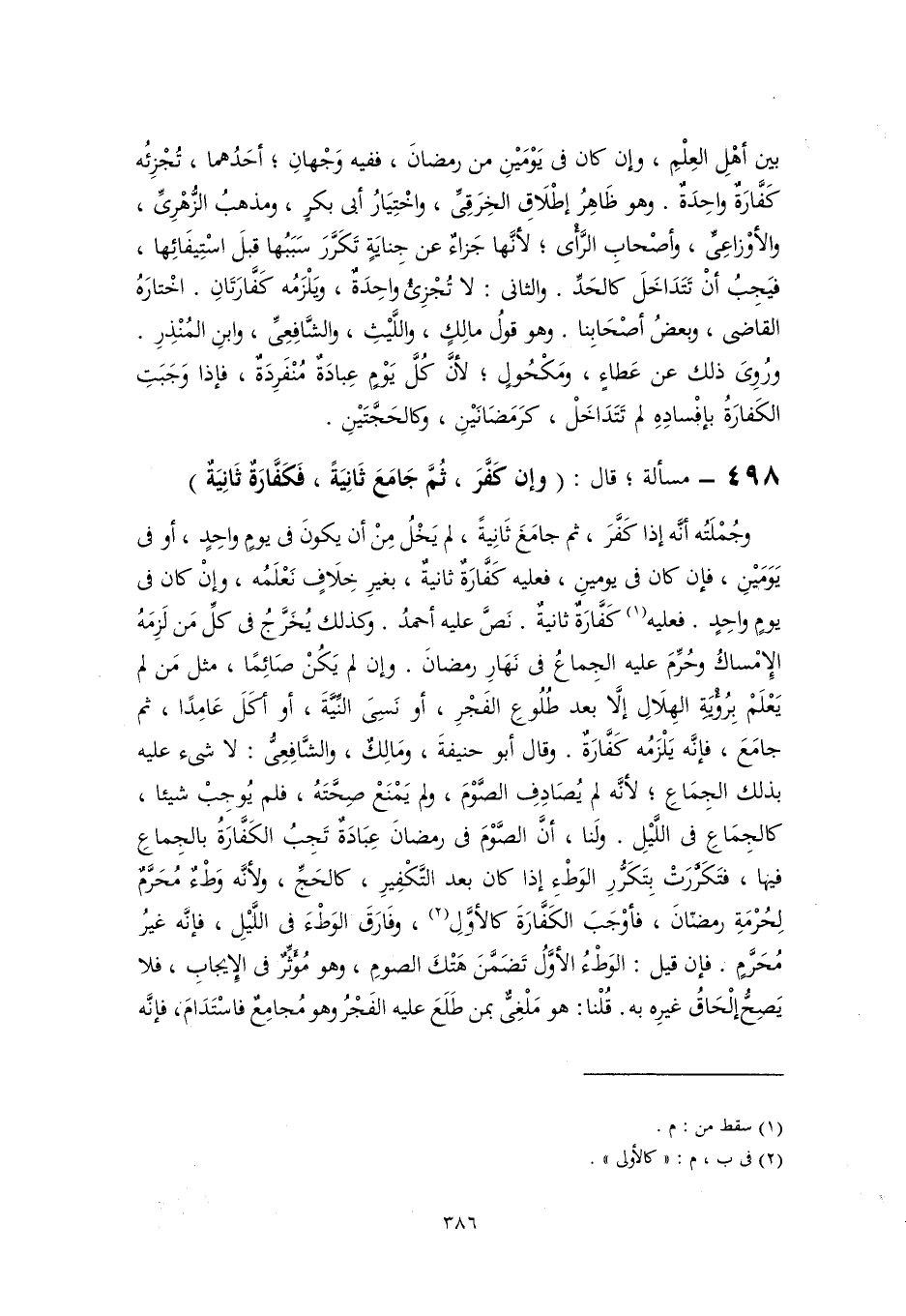 ٤٩٨ - مسألة؛ قال: (وإن كَفَّرَ، ثُمَّ جَامَعَ ثَانِيَةً، فَكَفَّارَةٌ ثَانِيَةٌ)