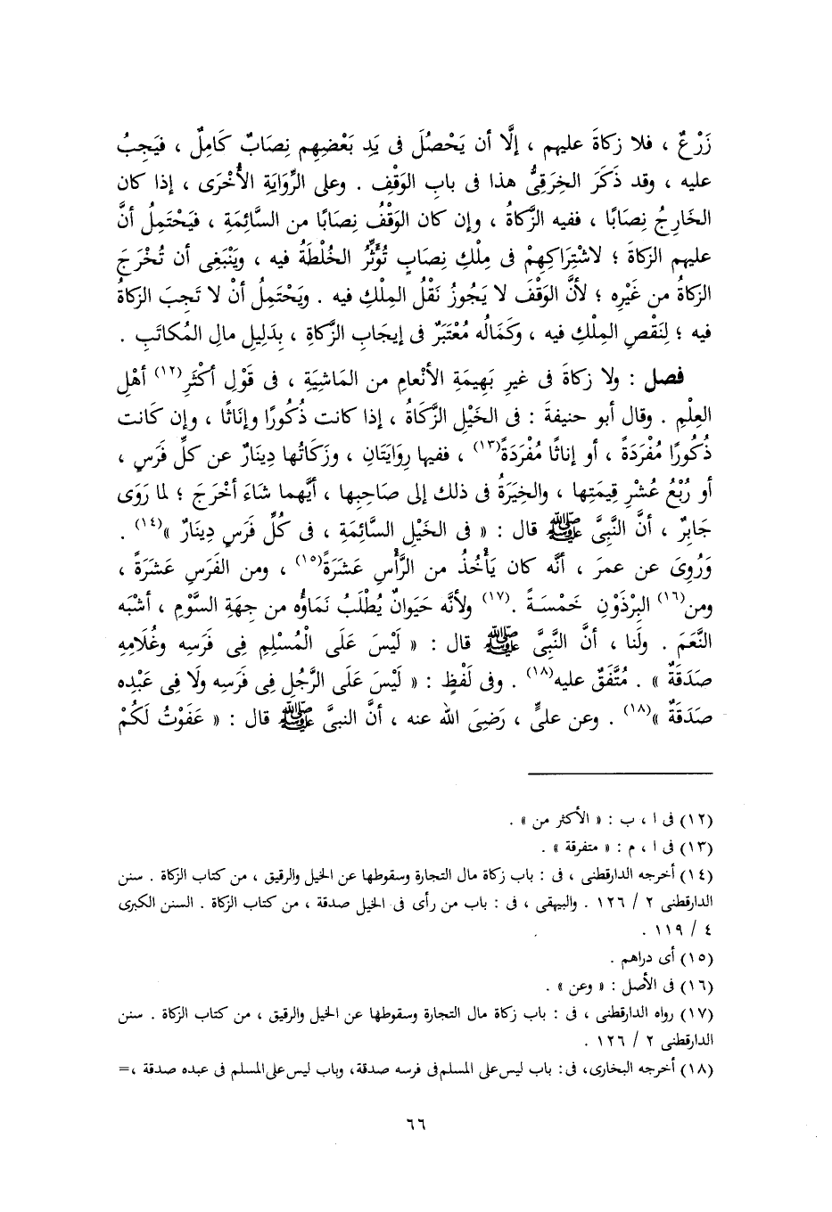(١٨) أخرجه البخارى، فى: باب ليس على المسلم فى فرسه صدقة، وباب ليس على المسلم فى عبده صدقة، =