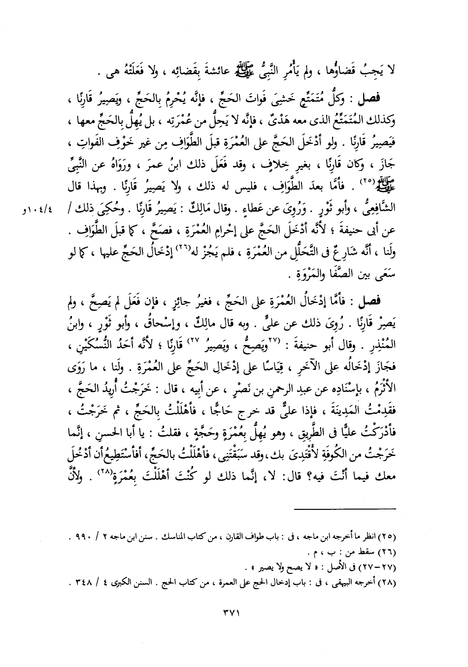 (٢٥) انظر ما أخرجه ابن ماجه، فى: باب طواف القارن، من كتاب المناسك. سنن ابن ماجه ٢/ ٩٩٠.