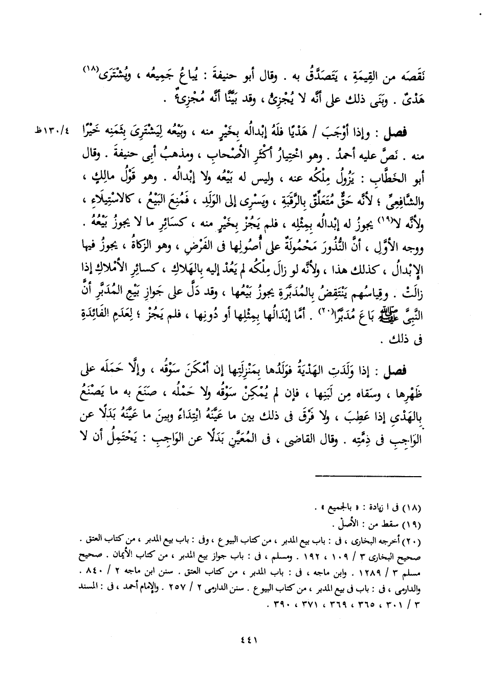 (٢٠) أخرجه البخارى، فى: باب بيع المدبر، من كتاب البيوع، وفى: باب بيع المدبر، من كتاب العتق. صحيح البخارى ٣/ ١٠٩، ١٩٢. ومسلم، فى: باب جواز بيع المدبر، من كتاب الأيمان. صحيح مسلم ٣/ ١٢٨٩. ابن ماجه، فى: باب المدبر، من كتاب العتق. سنن ابن ماجه ٢/ ٨٤٠. والدارمى، فى: باب فى بيع المدبر، من كتاب البيوع. سنن الدارمى ٢/ ٢٥٧. والإمام أحمد، فى: المسند ٣/ ٣٠١، ٣٦٥، ٣٦٩، ٣٧١، ٣٩٠.