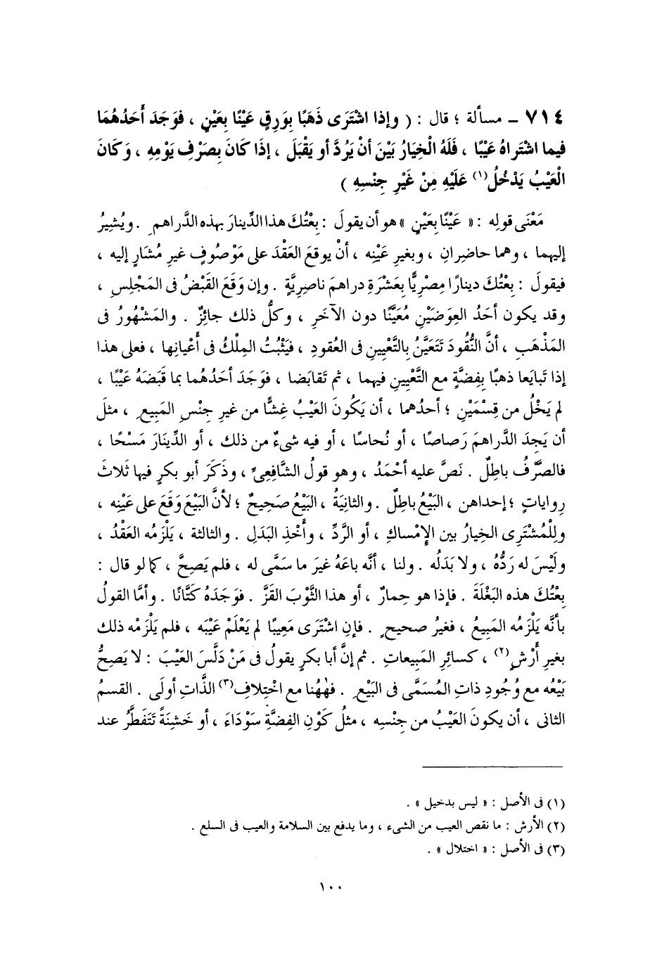 ٧١٤ - مسألة؛ قال: (وإذا اشْتَرَى ذَهَبًا بِوَرِقٍ عَيْنًا بِعَيْنٍ، فوَجَدَ أحَدُهُمَا فيما اشْتَراهُ عَيْبًا، فَلَهُ الْخِيَارُ بَيْنَ أنْ يَرُدَّ أو يَقْبَلَ، إذَا كَانَ بِصَرْفِ يَوْمِهِ، وَكَانَ الْعَيْبُ يَدْخُلُ (١) عَلَيْهِ مِنْ غَيْرِ جِنْسِهِ)