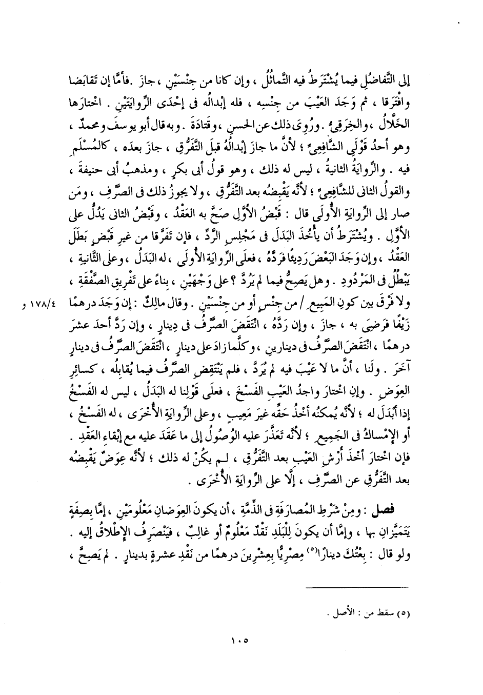 فصل: ومِنْ شَرْطِ المُصارَفَةِ فى الذِّمَّةِ، أن يكونَ العِوَضانِ مَعْلُومَيْنِ، إمَّا بِصِفَةٍ يَتَمَيَّزانِ بها، وإمَّا أن يكونَ لِلْبَلَدِ نَقْدٌ مَعْلُومٌ أو غالِبٌ، فيَنْصَرِفُ الإِطْلاقُ إليه. ولو قال: بِعْتُكَ دينارًا (٥) مِصْرِيًّا بِعِشْرِينَ درهمًا من نَقْدِ عشرةٍ بدينارٍ. لم يَصِحَّ،