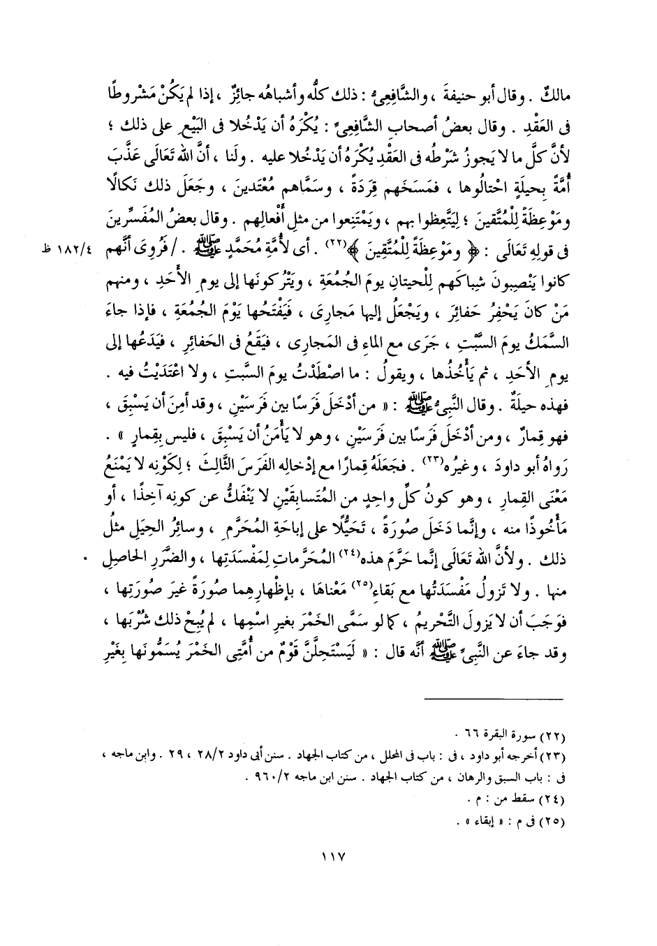 (٢٣) أخرجه أبو داود، فى: باب فى المحلل، من كتاب الجهاد. سنن أبى داود ٢/ ٢٨، ٢٩. وابن ماجه، فى: باب السبق والرهان، من كتاب الجهاد. سنن ابن ماجه ٢/ ٩٦٠.