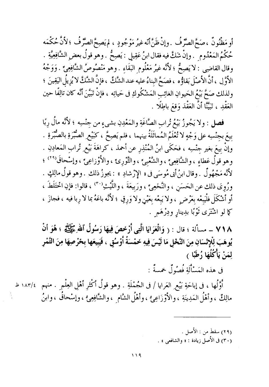 أو مَظْنُونٌ، صَحَّ الصَّرْفُ. وإنْ ظَنَّ أنَّه غيرُ مَوْجُودٍ، لم يَصِحَّ الصَّرْفُ؛ لأنَّ حُكْمَه حُكْمُ المَعْدُومِ. وإنْ شَكَّ فيه فقال ابنُ عَقِيلٍ: يَصِحُّ. وهو قولُ بعضِ الشَّافِعِيَّةِ. وقال القاضِى: لا يَصِحُّ؛ لأنَّه غيرُ مَعْلُومِ البَقَاءِ. وهو مَنْصُوصُ الشَّافِعِىِّ. وَوَجْهُ الأوَّلِ، أنَّ الأصْلَ بَقاؤُه، فصَحَّ البِناءُ عليه عند الشَّكِّ، فإنَّ الشَّكَّ لا يُزِيلُ اليَقِينَ؛ ولذلك صَحَّ بَيْعُ الحَيوانِ الغائِبِ المَشْكُوكِ فى حَياتِه، فإنْ تَبَيَّنَ أنَّه كان تالِفًا حين العَقْدِ، تَبَيَّنَّا أنَّ العَقْدَ وَقعَ باطِلًا.