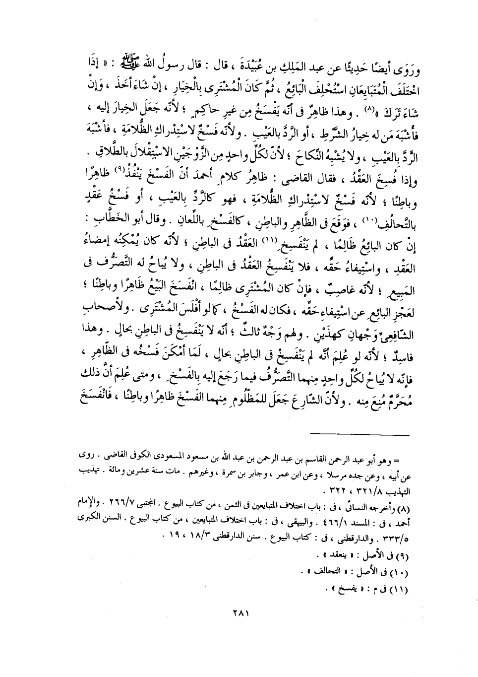 (٨) وأخرجه النسائى، فى: باب اختلاف المتبايعين فى الثمن، من كتاب البيوع. المجتبى ٧/ ٢٦٦. والإمام أحمد، فى: المسند ١/ ٤٦٦. والبيهقى، فى: باب اختلاف المتبايعين، من كتاب البيوع. السنن الكبرى ٥/ ٣٣٣. والدارقطنى، فى: كتاب البيوع. سنن الدارقطى ٣/ ١٨، ١٩.