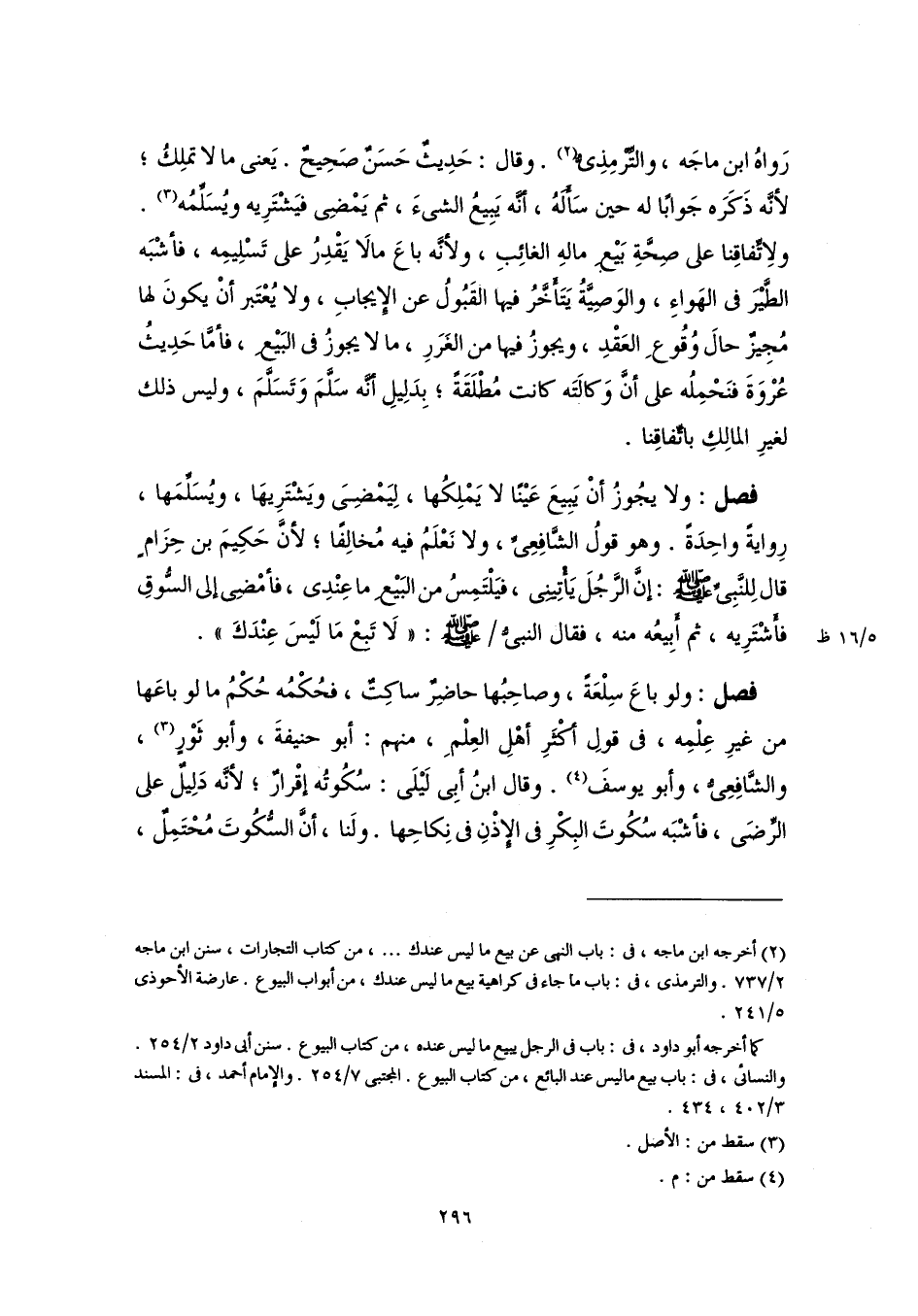 (٢) أخرجه ابن ماجه، فى: باب النهى عن بيع ما ليس عندك. . .، من كتاب التجارات، سنن ابن ماجه ٢/ ٧٣٧. والترمذى، فى: باب ما جاء فى كراهية بيع ما ليس عندك، من أبواب البيوع. عارضة الأحوذى ٥/ ٢٤١.