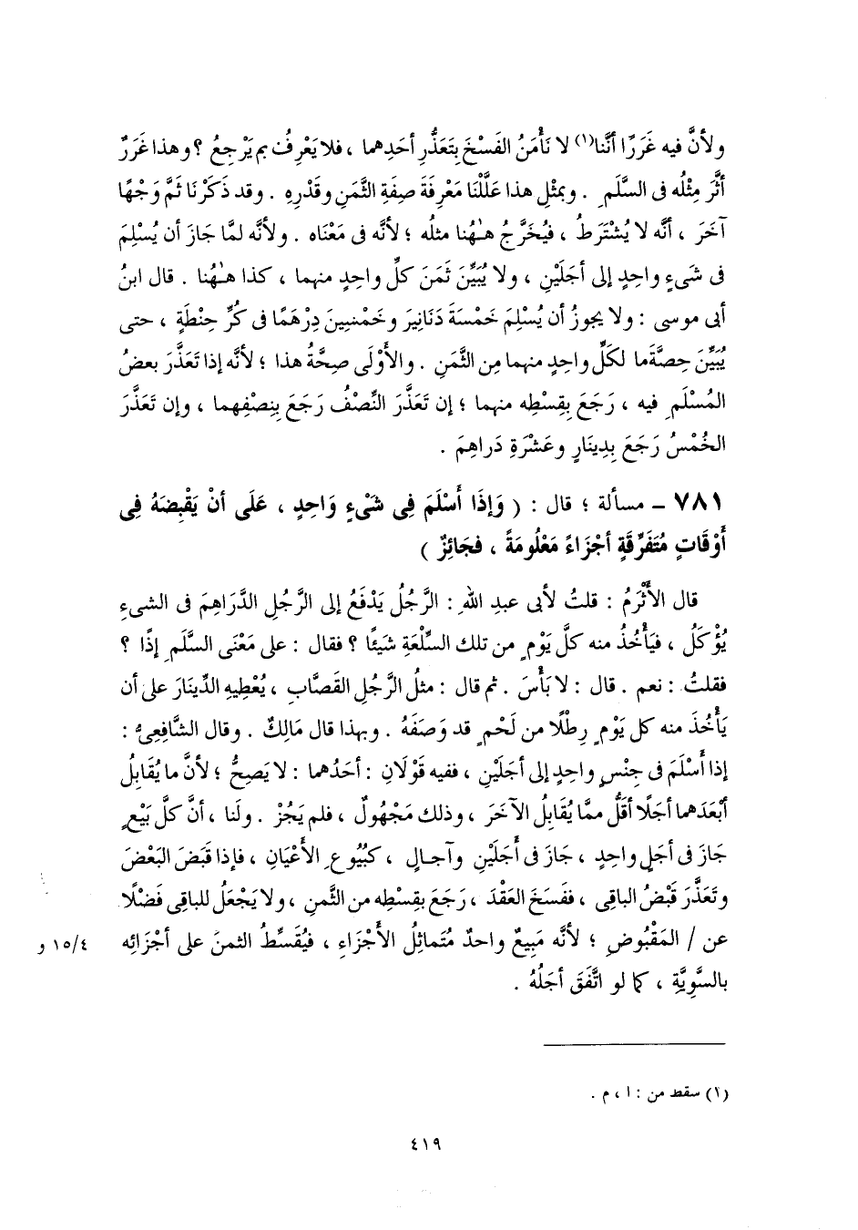 ٧٨١ - مسألة؛ قال: (وَإذَا أَسْلَمَ فِي شَىْءٍ وَاحِدٍ، عَلَى أنْ يَقْبِضَهُ فِي أَوْقَاتٍ مُتَفَرِّقَةٍ أجْزَاءً مَعْلُومَةً، فجَائِزٌ)