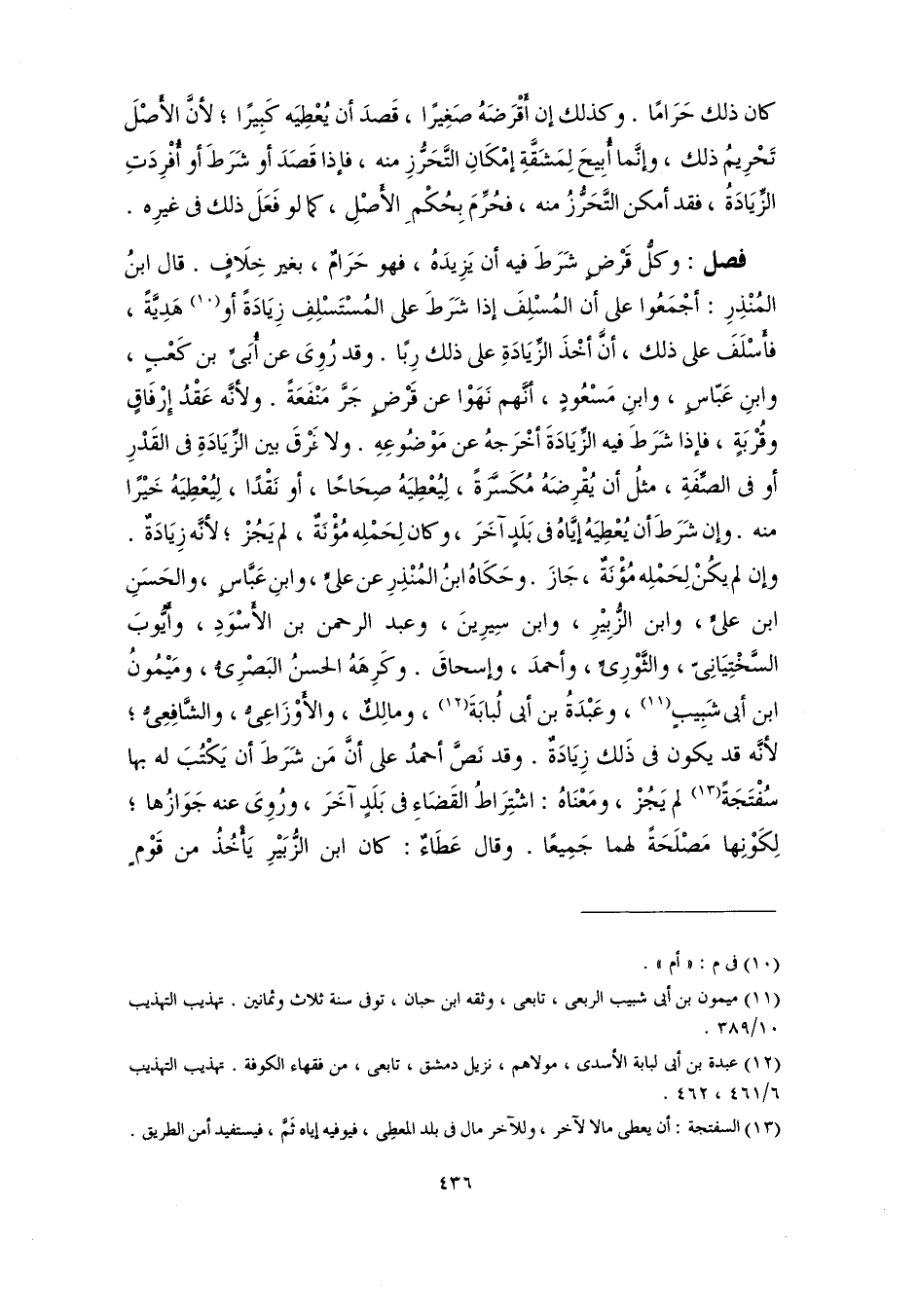 فصل: وكلُّ قَرْضٍ شَرَطَ فيه أن يَزِيدَهُ، فهو حَرَامٌ، بغير خِلَافٍ. قال ابنُ المُنْذِرِ: أجْمَعُوا على أن المُسْلِفَ إذا شَرَطَ على المُسْتَسْلِفِ زِيَادَةً أو (١٠) هَدِيَّةً، فأَسْلَفَ على ذلك، أنَّ أخْذَ الزِّيَادَةِ على ذلك رِبًا. وقد رُوِىَ عن أُبَىِّ بن كَعْبٍ، وابنِ عَبّاسٍ، وابنِ مَسْعُودٍ، أنَّهم نَهَوْا عن قَرْضٍ جَرَّ مَنْفعَةً. ولأنَّه عَقْدُ إِرْفَاقٍ وقُرْبَةٍ، فإذا شَرَطَ فيه الزِّيَادَةَ أخْرَجهُ عن مَوْضُوعِهِ. ولا فَرْقَ بين الزِّيَادَةِ فى القَدْرِ أو فى الصِّفَةِ، مثلُ أن يُقْرِضَهُ مُكَسَّرَةً، لِيُعْطِيَهُ صِحَاحًا، أو نَقْدًا، لِيُعْطِيَهُ خَيْرًا منه. وإن شَرَطَ أن يُعْطِيَهُ إيَّاهُ فى بَلَدٍ آخَرَ، وكان لِحَمْلِه مُؤْنَةٌ، لم يَجُزْ؛ لأنَّه زِيَادَةٌ. وإن لم يكُنْ لِحَمْلِه مُؤْنَةٌ، جَازَ. وحَكَاهُ ابنُ المُنْذِرِ عن علىٍّ، وابنِ عَبَّاسٍ، والحَسَنِ ابن علىًّ، وابن الزُّبِيْرِ، وابن سِيرِينَ، وعبد الرحمن بن الأَسْوَدِ، وأَيُّوبَ السَّخْتِيَانِىّ، والثَّوْرِىِّ، وأحمدَ، وإسحاقَ. وكَرِهَهُ الحسنُ البَصْرِىُّ، ومَيْمُونُ ابن أبى شَبِيبٍ (١١)، وعَبْدَةُ بن أبى لُبابَةَ (١٢)، ومالِكٌ، والأوْزَاعِىُّ، والشَّافِعِىُّ؛ لأنَّه قد يكون فى ذَلك زِيَادَةٌ. وقد نَصَّ أحمدُ على أنَّ مَن شَرَطَ أن يَكْتُبَ له بها سُفْتَجَةً (١٣) لم يَجُزْ، ومَعْنَاهُ: اشْتِرَاطُ القَضَاءِ فى بَلَدٍ آخَرَ، ورُوِىَ عنه جَوَازُها؛ لِكَوْنِها مَصْلَحَةً لهما جَمِيعًا. وقال عَطَاءٌ: كان ابن الزُّبَيْرِ لَا يَأْخُذُ من قَوْمٍ