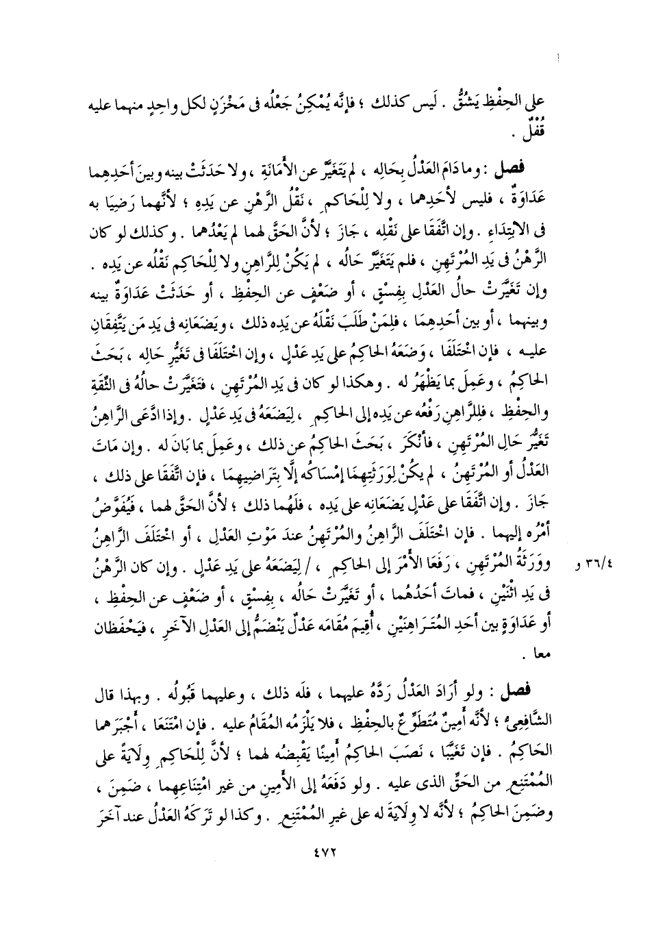 فصل: وما دَامَ العَدْلُ بِحَالِه، لم يَتَغَيَّرْ عن الأَمَانَةِ، ولا حَدَثَتْ بينه وبينَ أحَدِهِما عَدَاوَةٌ، فليس لأحَدِهما، ولا لِلْحَاكمِ، نَقْلُ الرَّهْنِ عن يَدِهِ؛ لأنَّهما رَضِيَا به فى الابْتِدَاءِ. وإن اتَّفَقَا على نَقْلِه، جَازَ؛ لأنَّ الحَقَّ لهما لم يَعْدُهما. وكذلك لو كان الرَّهْنُ فى يَدِ المُرْتَهِنِ، فلم يَتَغَيَّرْ حَالُه، لم يَكُنْ لِلرَّاهِنِ ولا لِلْحَاكِم نَقْلُه عن يَدِه. وإن تَغَيَّرَتْ حالُ العَدْلِ بِفِسْقٍ، أو ضَعْفٍ عن الحِفْظِ، أو حَدَثَتْ عَدَاوَةٌ بينه وبينهما، أو بين أحَدِهِمَا، فلِمَنْ طَلَبَ نَقْلَهُ عن يَدِه ذلك، ويَضَعَانِه فى يَدِ مَن يَتَّفِقَانِ عليه، فإن اخْتَلَفَا، وَضَعَهُ الحاكِمُ على يَدِ عَدْلٍ، وإن اخْتَلَفَا فى تَغَيُّرِ حَالِه، بَحَثَ الحاكِمُ، وعَمِلَ بما يَظْهَرُ له. وهكذا لو كان فى يَدِ المُرْتَهِنِ، فتَغَيَّرَتْ حالُهُ فى الثِّقَةِ والحِفْظِ، فلِلرَّاهِنِ رَفْعُه عن يَدِه إلى الحاكِمِ، لِيَضَعَهُ فى يَدِ عَدْلٍ. وإذا ادَّعَى الرَّاهِنُ تَغَيُّرَ حَالِ المُرْتَهِنِ، فأنْكَرَ، بَحَثَ الحاكِمُ عن ذلك، وعَمِلَ بما بَانَ له. وإن مَاتَ العَدْلُ أو المُرْتَهِنُ، لم يكُنْ لِوَرَثَتِهِمَا إمْسَاكُه إلَّا بِتَرَاضِيهِمَا، فإن اتَّفَقَا على ذلك، جَازَ. وإن اتَّفَقَا على عَدْلٍ يَضَعَانِه على يَدِه، فلَهُما ذلك؛ لأنَّ الحَقَّ لهما، فَيُفَوَّضُ أمْرُه إليهما. فإن اخْتَلَفَ الرَّاهِنُ والمُرْتَهِنُ عندَ مَوْتِ العَدْلِ، أو اخْتَلَفَ الرَّاهِنُ ووَرَثَةُ المُرْتَهِنِ، رَفَعَا الأَمْرَ إلى الحاكِمِ، لِيَضَعَهُ على يَدِ عَدْلٍ. وإن كان الرَّهْنُ فى يَدِ اثْنَيْنِ، فماتَ أحَدُهُما، أو تَغَيَّرَتْ حَالُه، بِفِسْقٍ، أو ضَعْفٍ عن الحِفْظِ، أو عَدَاوَةٍ بين أحَدِ المُتَرَاهِنَيْنِ، أُقِيمَ مُقَامَه عَدْلٌ يَنْضَمُّ إلى العَدْلِ الآخَرِ، فيَحْفَظان معا.