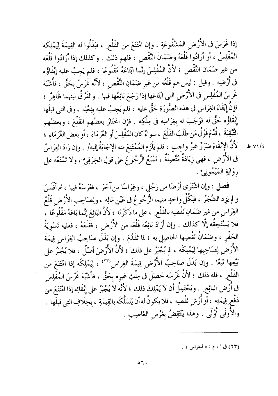 (٢٣) فى أ، م: "للغراس".