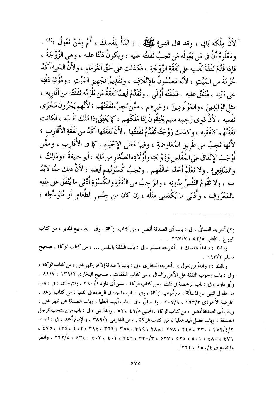 وبلفظ: "ابدأ بنفسك". أخرجه مسلم، في: باب النفقة بالنفس. . .، من كتاب الزكاة. صحيح مسلم ٢/ ٦٩٣.