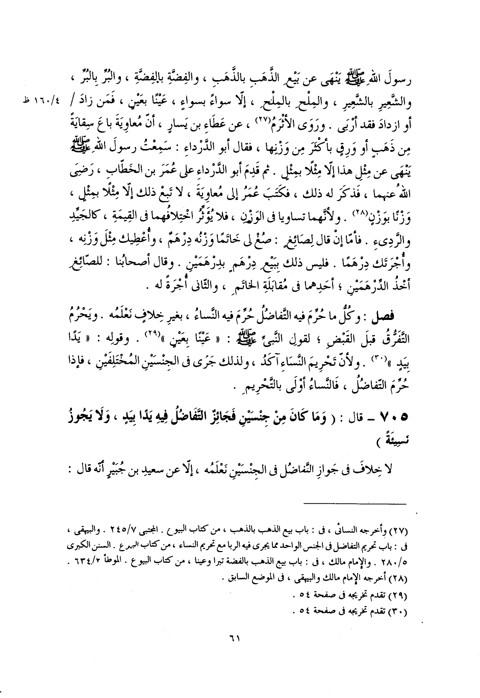 ٧٠٥ - قال: (وَمَا كَانَ مِنْ جِنْسَيْنِ فَجَائِزٌ التَّفَاضُلُ فِيهِ يَدًا بِيَدٍ، وَلَا يَجُوزُ نَسِيئَةً)