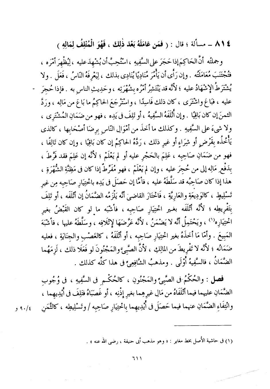 ٨١٤ - مسألة؛ قال: (فمَن عَامَلَهُ بَعْدَ ذلِكَ، فَهُوَ الْمُتْلِفُ لِمَالِهِ)
