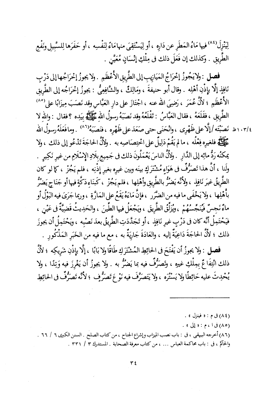(٨٦) أخرجه البيهقى، فى: باب نصب الميزاب وإشراع الجناح، من كتاب الصلح. السنن الكبرى ٦/ ٦٦. والحاكم، فى: باب محاكمة العباس. . .، من كتاب معرفة الصحابة. المستدرك ٣/ ٣٣١.